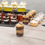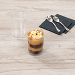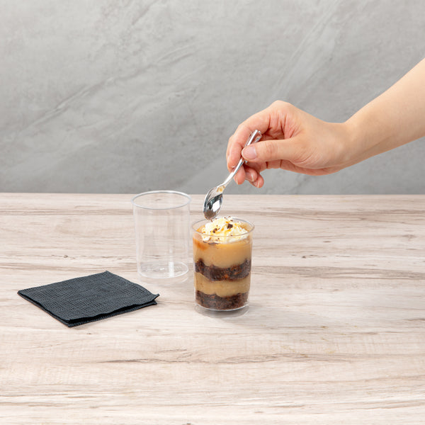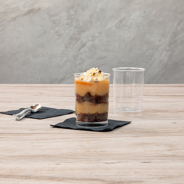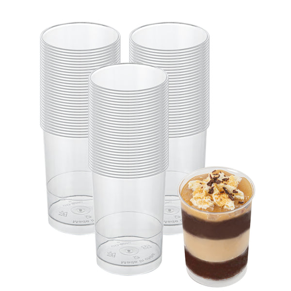 Elevate your dessert presentation with our Mini Serve 5-ounce Round Clear Plastic Dessert Cups. Crafted from durable PS plastic, these recyclable plastic dessert cups are designed to hold cold foods, making them ideal for serving ice cream and gelato. Showcasing a clear finish, these dessert cups allow guests to easily view their delicious treats while providing a sleek and modern look. The stackable design of these disposable dessert cups offers a space-saving solution for your kitchen or dessert display. For added convenience, pair these clear dessert containers with available lids (RWP1413C) to keep desserts fresh and protected. With a 5-ounce capacity and measuring 2.5 inches in diameter by 3 inches in height, these clear plastic dessert cups are perfect for serving individual portions of your delectable creations. Sold in a 100 count box. Lids are available and sold separately.