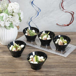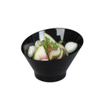 Send your customers and guests to culinary heights with our Mini Serve 7-ounce Round Black Plastic Incline Bowls. The sloping edge of these mini soup bowls adds an artistic flair to your food presentations. These disposable bowls, with a deep construction, give them an ample basin for bold servings of soups, stews, desserts, and other culinary delights. Easy to dispose of after the end of the party, these sturdy plastic bowls are disposable for easy cleaning. Featuring a sleek black finish, these durable plastic bowls add a sophisticated touch to your food presentations. These mini fruit bowls have a capacity of 7 ounces and measure 4.25 inches in diameter by 2.75 inches in height. Sold in a 20 count box.