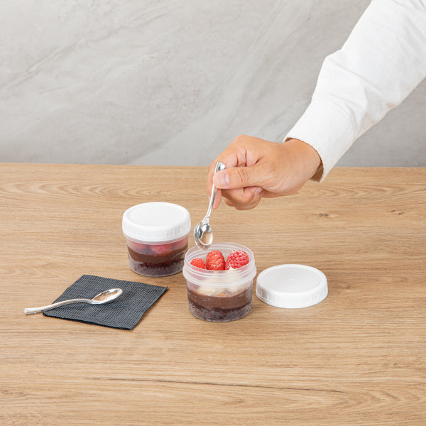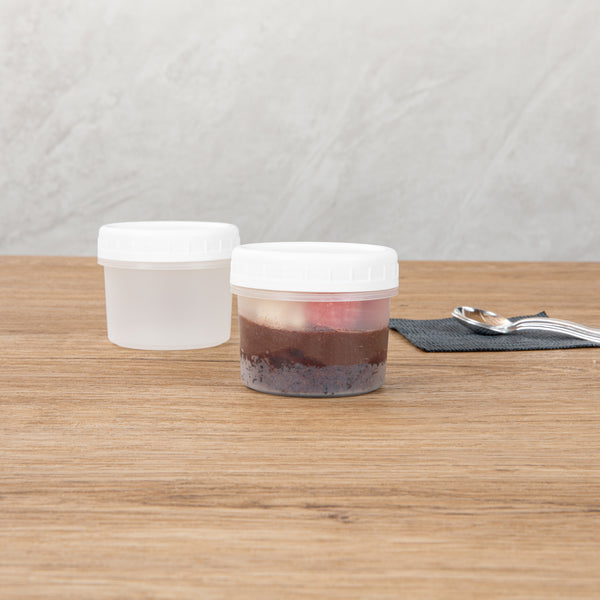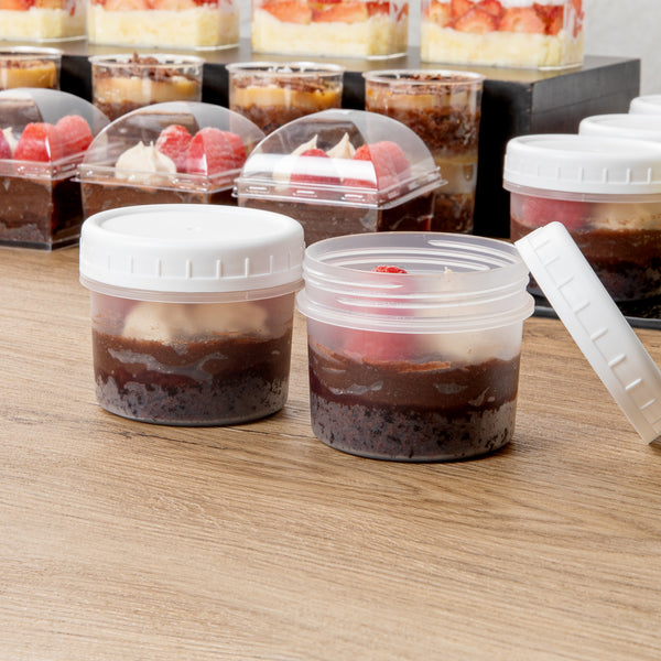 Showcase your desserts elegantly with our Mini Serve 7-ounce Round Clear Plastic Dessert Cups. Crafted from BPA-free PP plastic, these recyclable plastic dessert cups are built to withstand hot and cold foods without cracking or breaking. These clear dessert cups are perfect for showcasing your delicious desserts, making them irresistible to your patrons. For your convenience, these disposable dessert cups come with matching lids, ensuring your delicious treats are protected in transit. These microwavable clear recyclable plastic dessert cups allow you to serve warm desserts with ease, making them a versatile addition to your foodservice operation. Easily stackable, these plastic dessert glasses save valuable storage space in your kitchen. With a capacity of 6.76 ounces, these dessert cups with lids are perfect for serving individual portions of your signature desserts. Measuring 2.75 inches in diameter by 2.5 inches in height, these clear dessert cups with lids are compact yet spacious enough to hold a generous serving of your delicious treats. Sold in a 100 count box.