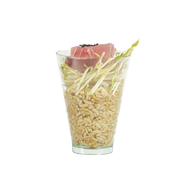 Elevate your appetizer and dessert service with our Mini Serve 7-ounce Round Seagreen Plastic Incline Glasses. Boasting a modern incline shape, these transparent plastic appetizer vessels are an indispensable addition to chic bakeries and high-end catering services. Made from sturdy plastic, these dessert glasses offer the convenience of being disposable. These transparent dessert glasses, being lightweight, can showcase your luscious layers of vanilla bean panna cotta and other creations in a temptingly portable manner. Featuring a tall stature with an inclined top, these dessert vessels are designed for easy grip and effortless scooping. The disposable, premium plastic construction of these stylish dessert cups allows for swift disposal post-use, simplifying cleanup. Their stylish seagreen finish intensifies the visual appeal of your dessert presentations. These disposable dessert cups measure 3 inches in length by 3 inches in width by 4 inches in height and have an accommodating capacity of 7 ounces. Sold in a 100 count box.