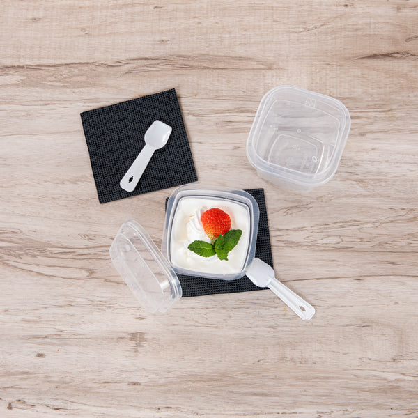 Serve your delectable desserts elegantly with our Mini Serve 7-ounce Square Clear Plastic Dessert Cups. These recyclable plastic dessert cups are crafted from BPA-free PP plastic, ensuring a sturdy and reliable way to present your culinary creations. With the included lids and spoons, these dessert cups make serving a breeze while reducing the need for extra utensils. These clear dessert cups with lids and spoons enhance the visual appeal of your desserts, allowing customers to feast their eyes before digging in. Suitable for hot and cold foods, these microwavable plastic dessert glasses can handle it all, making them an ideal choice for a wide range of sweet treats. Boasting a generous capacity of 7 ounces, these clear dessert cups can comfortably hold a variety of portion sizes. Measuring 3 inches in length by 3 inches in width by 3.5 inches in height, these disposable dessert cups are compact yet offer ample space for your delectable desserts. Sold in a 25 count box.