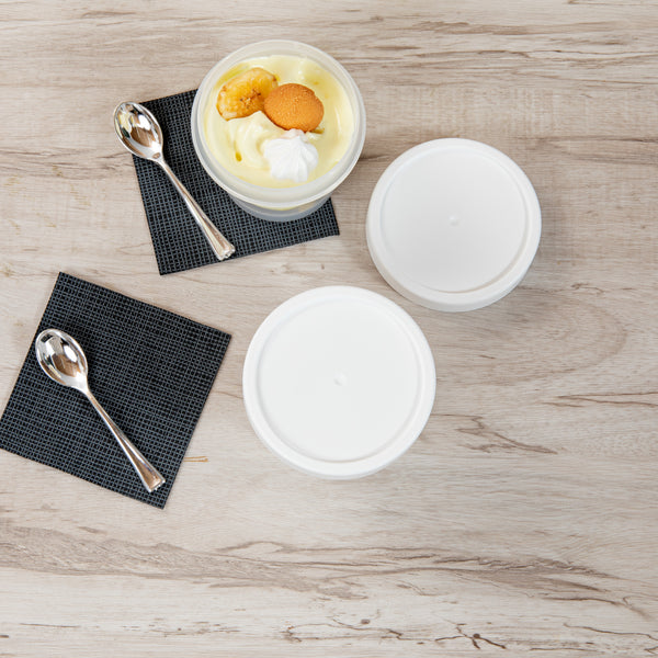 7 OZ ROUND CLEAR PLASTIC DESSERT CUP - WITH LID