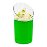 100 3 OZ PLASTIC INCLINE SHOT GLASSES AND 100 SILVER 4" MINI SPOONS