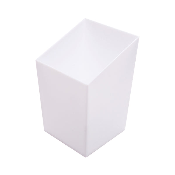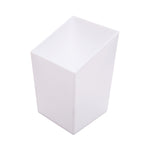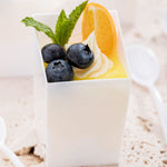 Elevate your culinary presentations with our Bundle: Mini Serve 100 3-ounce Square White Plastic Incline Cups with 100 Silver Plastic 4" Mini Spoons, providing a sophisticated yet eco-friendly solution. This bundle includes 100 square incline cups and silver plastic min spoons. Featuring a sleek sloping edge, these white dessert cups offer an attractive display for treats. The sturdy construction of the square incline cups allows for easy handling and passing around, while their disposable nature ensures convenient cleanup after any event. These versatile cups are perfect for serving condiments, nuts, candies, and more, thanks to their white finish and compact size. Complementing the shot glasses, the silver plastic mini spoons feature a shiny silver finish to enhance the presentation of your dishes. The 4-inch plastic spoons boast strong and sturdy handles, making them ideal for accompanying miniature tuna tartare, personal-sized strawberry shortcakes, hefty bites of polenta, and big scoops of gelato. Made from premium plastic, these appetizer spoons are conveniently disposable and completely recyclable, making them a perfect flatware option for eco-conscious cafes, venues, and clients. Measuring 1.75 inches in length by 1.75 inches in width by 2.75 inches in height with a 3-ounce capacity for the cups and 4 inches in length for the spoons, this bundle offers ample space for your culinary creations. Each order includes 100 plastic cups and 100 silver plastic spoons.