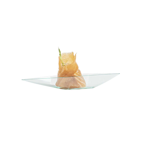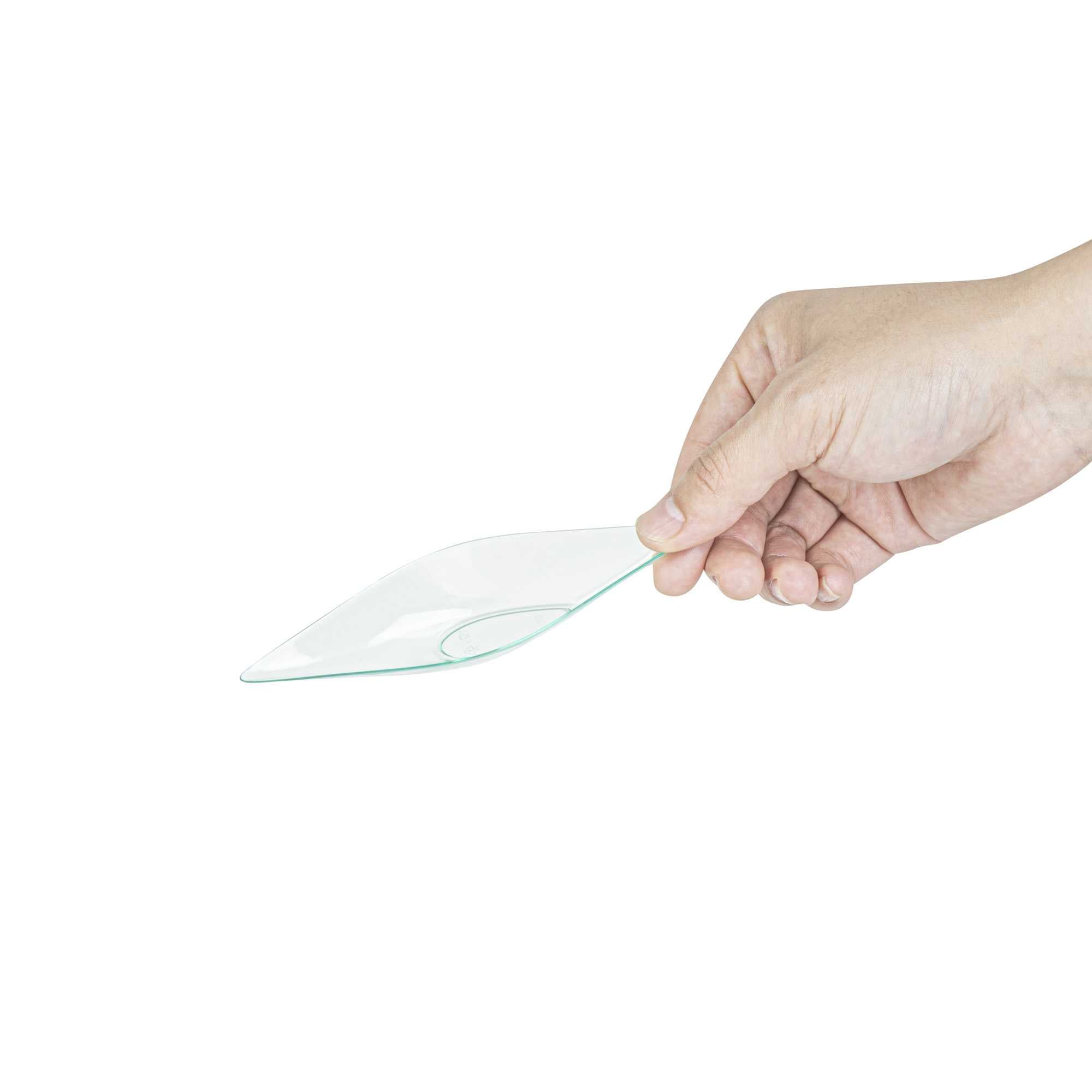 Add an exceptional touch to your snack service with our Mini Serve Diamond Seagreen Plastic Canoe Dishes. Designed for serving fruit, sauce, shrimp, or other small snack portions, these tiny plastic bowls offer a delightful alternative to conventional plastic dinnerware. Crafted from premium plastic, these modern mini canoe dishes are built to last. Made from plastic, they serve as the perfect sustainable choice for your foodservice venue. Present nuts or bite-sized cold appetizers stylishly in these food canoes, making your culinary display truly stand out. The disposable nature of these mini food vessels ensures efficient cleanup after events. Boasting a chic and transparent seagreen finish, these plastic canoes elevate each serving with a touch of modern sophistication. Each petite dish measures 5 inches in length by 1.5 inches in width and holds up to 1 ounce. Sold in a 100 count box.