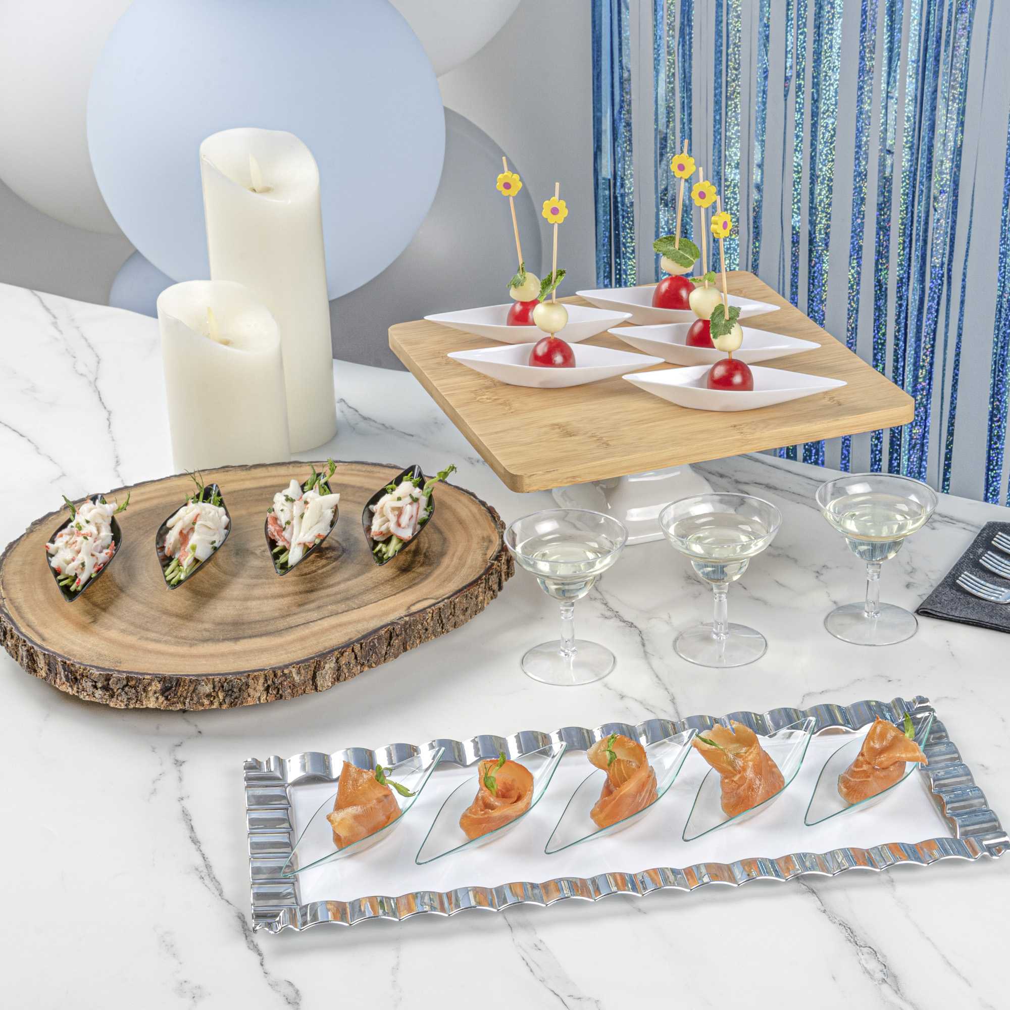 - Canoe shape adds a stylish touch to appetizers and desserts