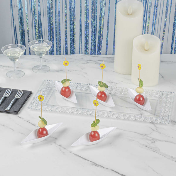 - Canoe shape adds a stylish touch to appetizers and desserts