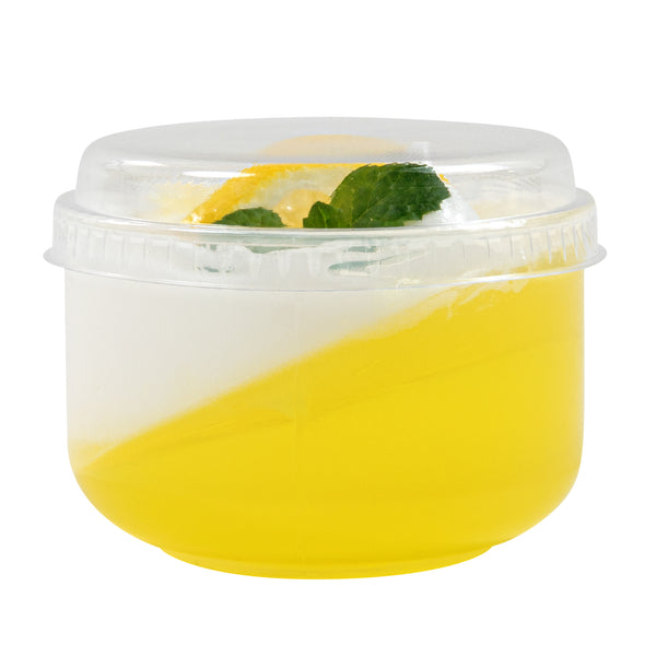 Enhance your dessert presentation with reliable protection. Our Clear Dome-Shaped Plastic Dome Lids feature a dome-shaped design that accommodates extra toppings, maximizing the visual appeal of your creations. Crafted from crack-resistant PET plastic, these plastic dome lids are designed to withstand high-demand settings, ensuring your chilled treats remain intact and appealing. The crystal clear finish of these clear plastic lids offers unobstructed views of the contents, allowing for quick and efficient identification, saving valuable time in bustling foodservice environments. Measuring 2.7 inches in length, 2.4 inches in width, and 0.8 inches in height, these BPA-free and recyclable lids fit securely over a variety of containers, enhancing the safety of your offerings. Ideal for restaurants and caterers, these crack-resistant dessert lids provide a dependable solution for maintaining product integrity. Each order includes 25 Clear Dome-Shaped Plastic Dome Lids.