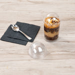 Exhibit your delightful desserts with our Mini Serve Round Clear Plastic Dome Lids. Crafted from durable PS plastic, these dome lids are designed to withstand the hustle and bustle of your busy foodservice establishment. With a unique dome design, these recyclable plastic dome lids provide extra room for creams and elegantly showcase the enticing flavors of your cold foods and desserts. These clear dessert cup lids provide an unobstructed view of your tasty treats, enticing customers to try your culinary creations. Plus, these clear dome lids are designed to be stackable, optimizing your storage space and facilitating easy transport. These disposable plastic lids offer a quick and efficient cleanup solution. Perfectly fitting our 5 ounce dessert cups (RWP1412C), these dome lids ensure your desserts remain protected in transit. Measuring 2.5 inches in diameter by 1.25 inches in height, these lids are compact and provide ample coverage for your dessert cups. Sold in a 100 count box. Dessert cups are available and sold separately.