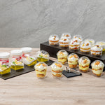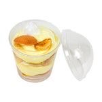 Elevate your dessert presentation with our Mini Serve Round Clear Plastic Dome Lids. Crafted from durable PS plastic, these dome lids are sturdy and are perfect for outdoor events or takeaway services. The dome design of these plastic lids allows you to decorate the treats and provides easy stacking, saving valuable space in your kitchen or display counter. Suitable for cold foods, these recyclable clear dome lids help maintain the freshness and quality of your culinary creations. With a clear finish, these disposable plastic lids allow customers to easily view their selected treats, enhancing their dining experience. These recyclable clear dome lids measure 3 inches in diameter by 1.25 inches in height, fitting perfectly with our 6-ounce dessert cups (RWP1414C). Sold in a 100 count box. Dessert cups are available and sold separately.