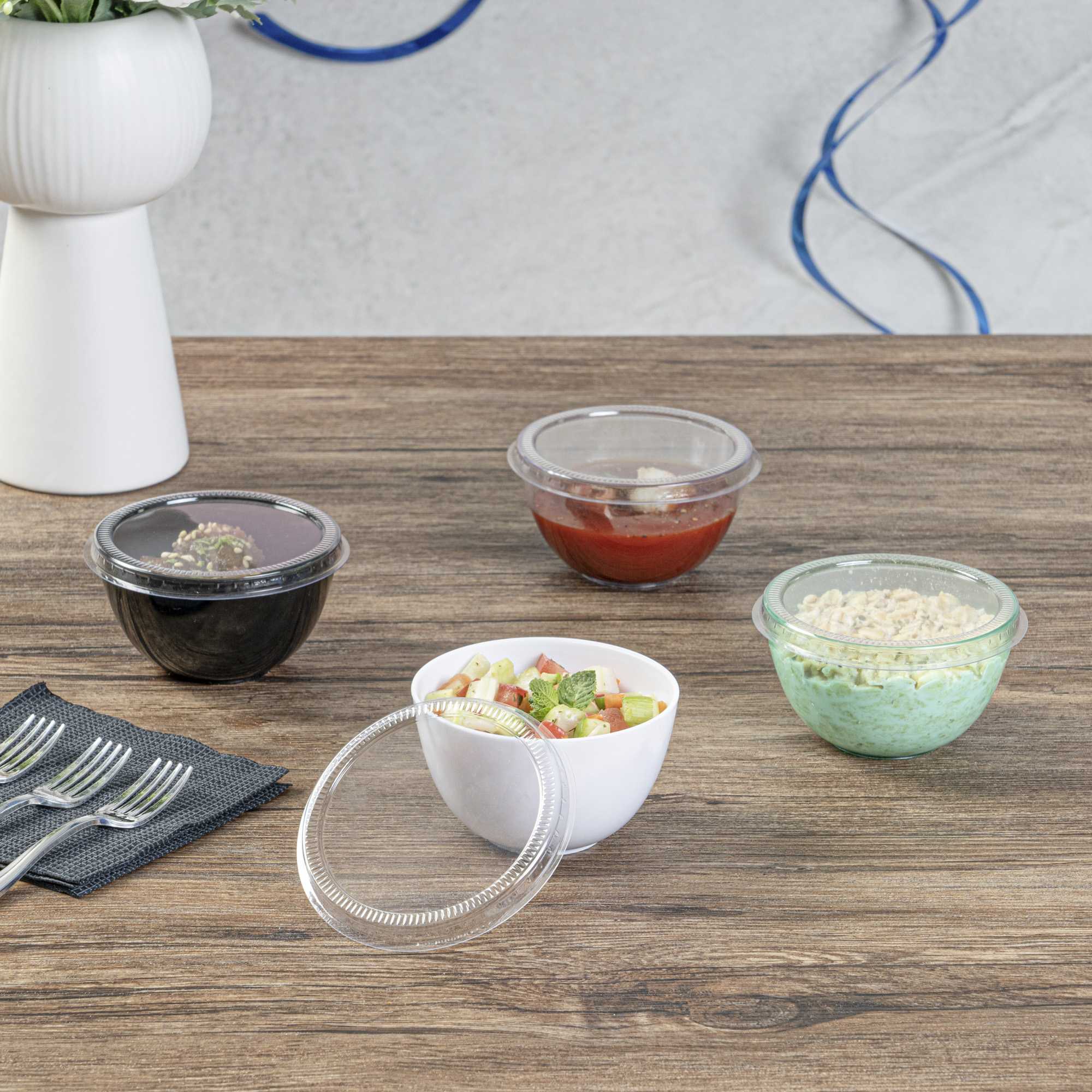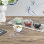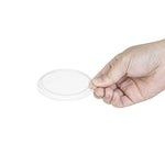 Simplify your food packaging with our Mini Serve Round Clear Plastic Lids. These crystal-clear plastic lids are designed to give your customers an irresistible sneak peek inside your packaged snacks and treats. Made from plastic, these lids fit tightly on our Mini Serve coordinating cups to form a strong and leak-resistant seal. With an airtight fitting, these plastic lids help create mess-free packaging for tasting courses, side dishes, or desserts. These plastic dessert cup lids can be easily stacked for convenient storage and effortless transportation. Pair these lids with our Mini Serve coordinating collection of Bodega, Parfait, or Cylindro Cups (SKUs RWP0023G, RWP0023B, RWP0023W, and RWP0023C). Each clear plastic lid measures 3 inches in diameter. Sold in a 100 count box. Coordinating Cups are available and sold separately.