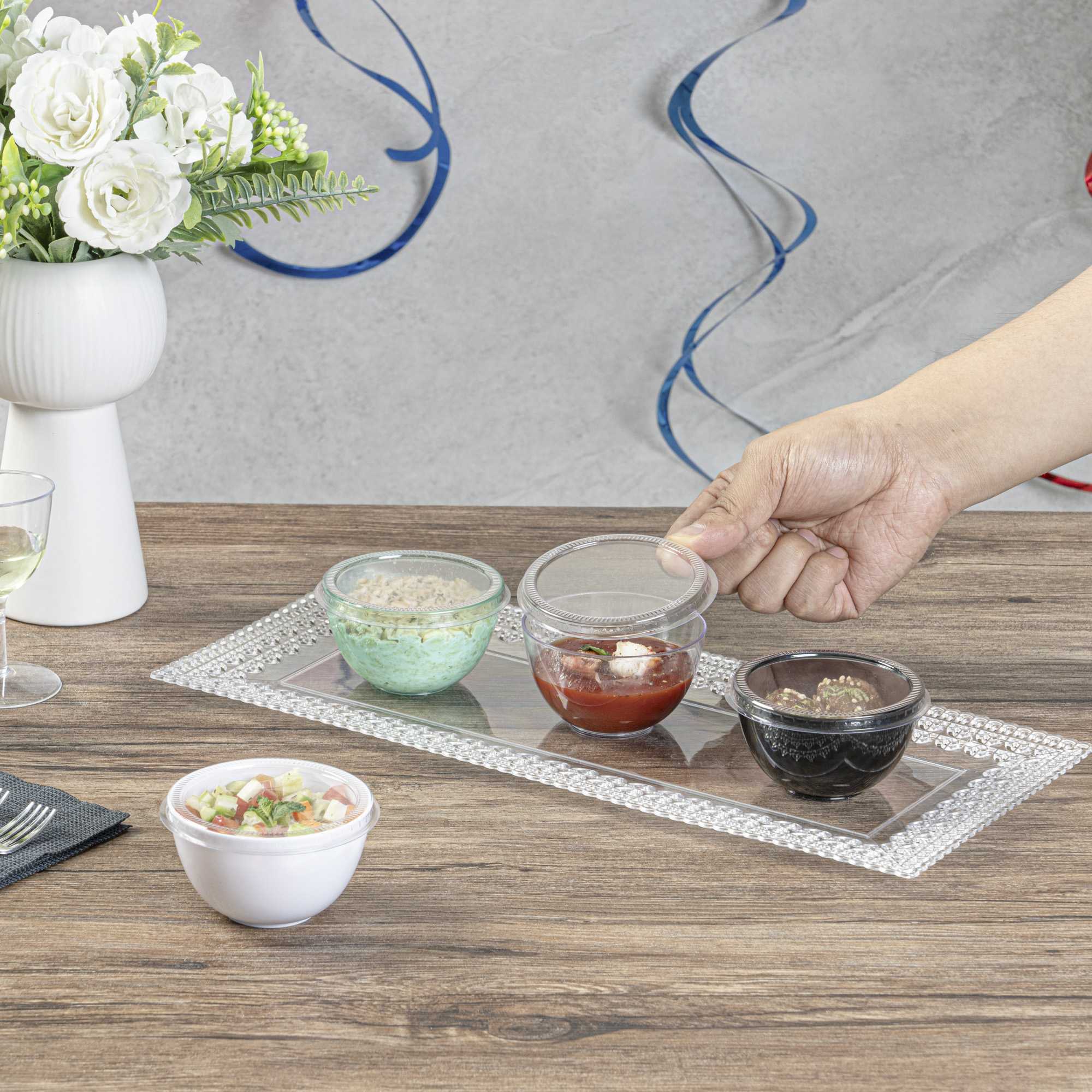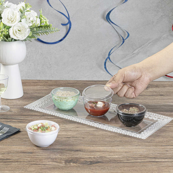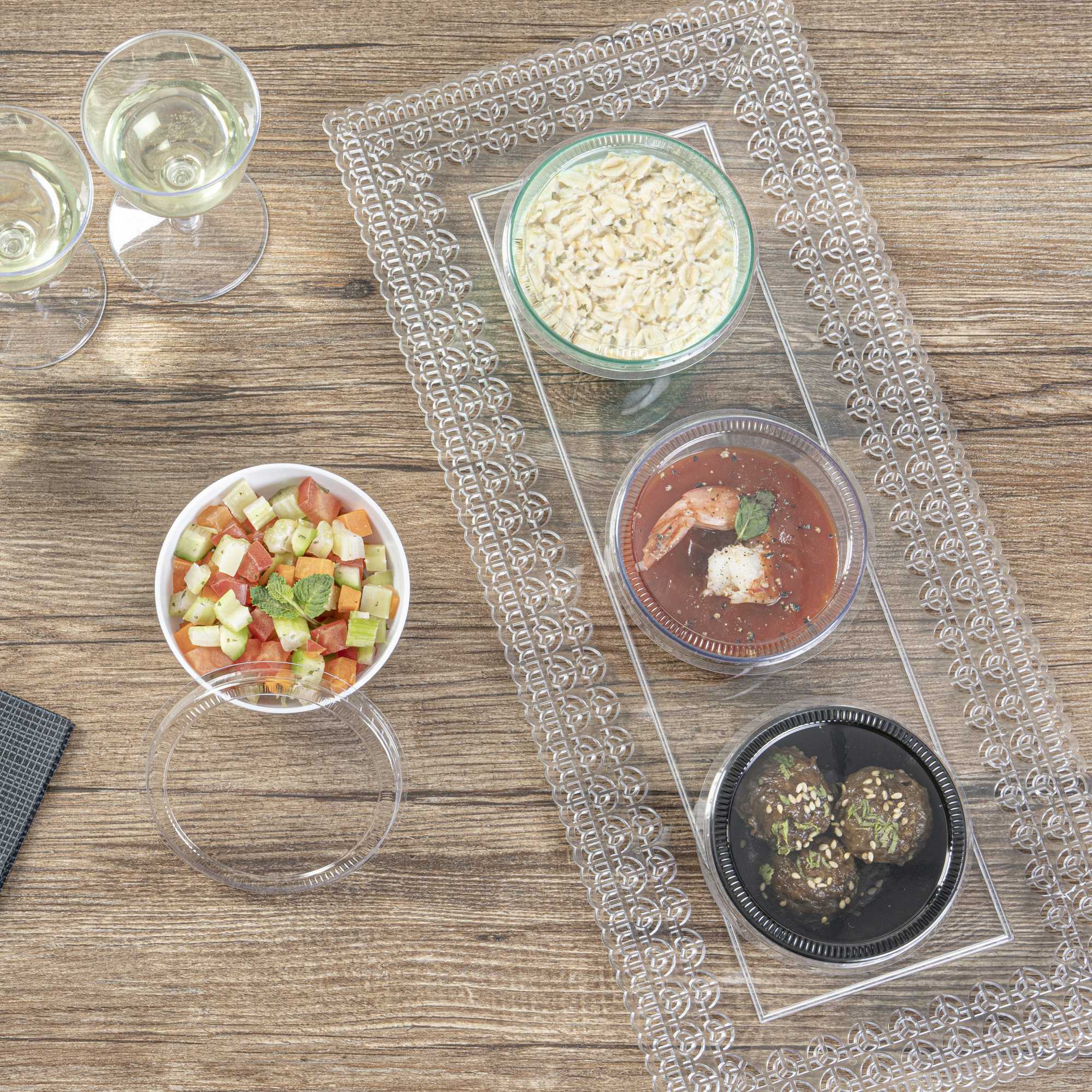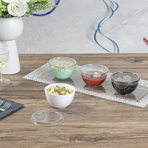 - Crystal clear finish beautifully showcases appetizers and desserts
