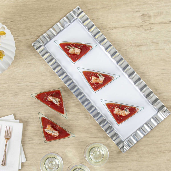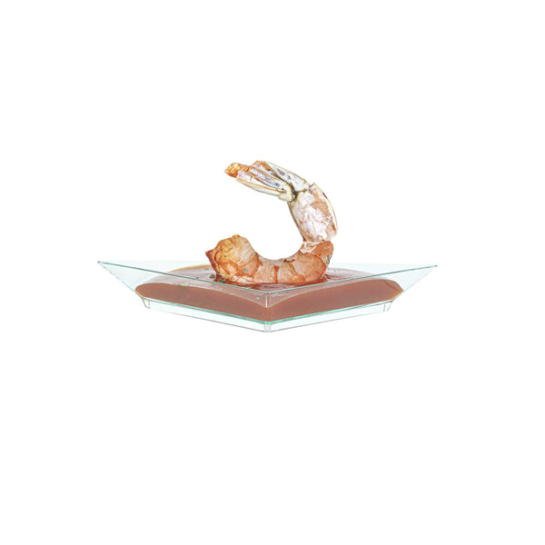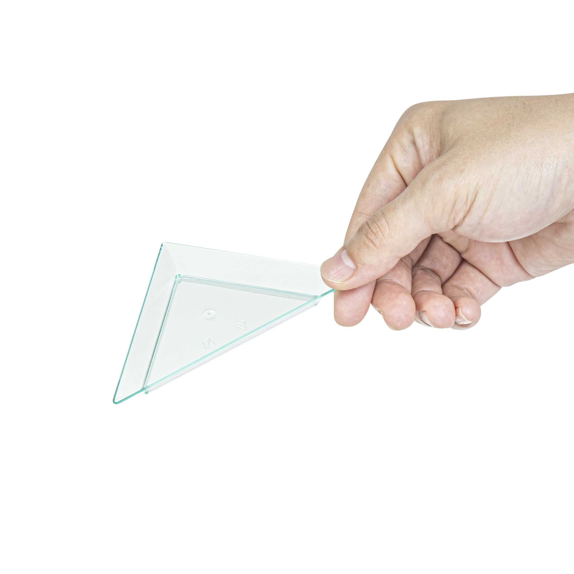 Elevate your hors d'oeuvres with our Mini Serve Seagreen Plastic Mini Triangolo Appetizer Plates. Manufactured from premium PS plastic, these mini plates exhibit durability and avert warping while displaying your culinary masterpieces. The captivating seagreen finish adorns these triangolo plates, amplifying the presentation of scrumptious delights. Designed for cold dishes, these mini plates seamlessly cater to a multitude of chilled appetizers and frosty desserts. These seagreen plates can be effortlessly disposed of, ensuring a seamless cleanup process. With dimensions of 4 inches in length by 2 inches in width, these disposable mini plates allow for picture-perfect presentations of gourmet eats. Sold in a 100 count box.
