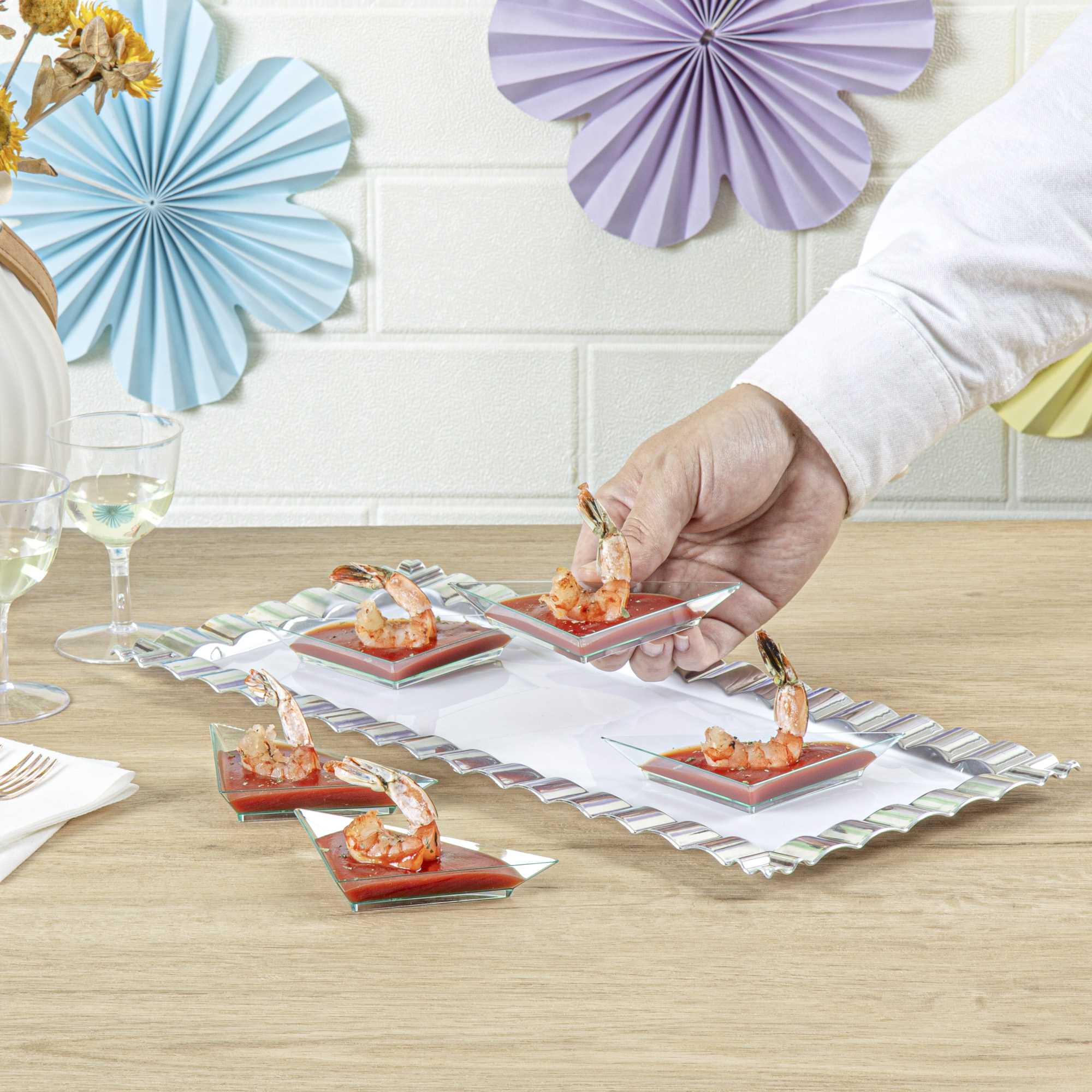 - Raised edges carefully contain food, preventing appetizers from falling out