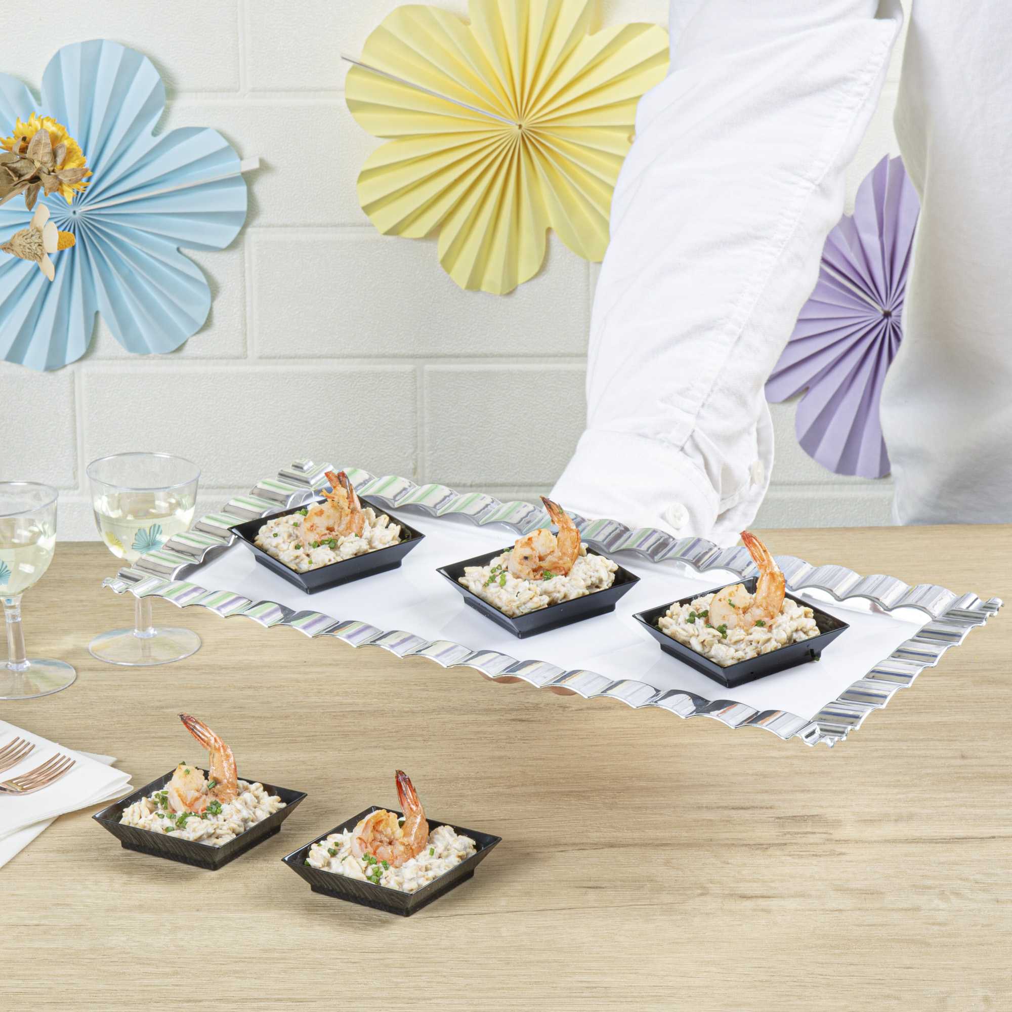- Square shape gives an elegant look to your bite-size appetizers