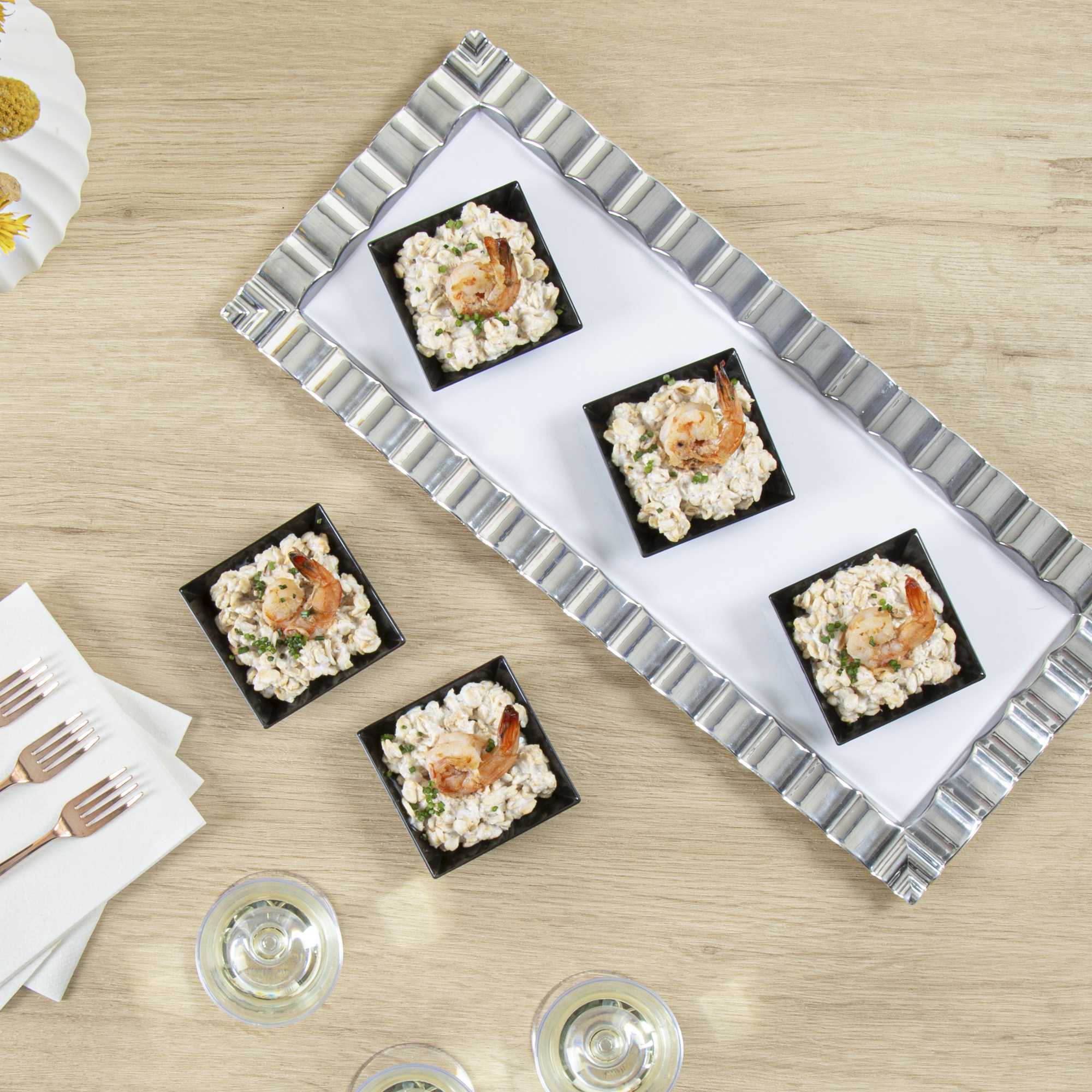 • Raised edges carefully contain food, preventing appetizers from falling out