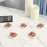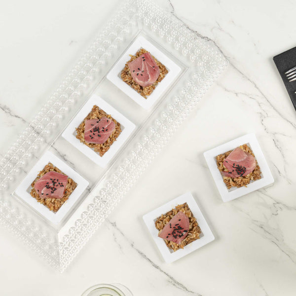 - Square shape elegantly upgrades the look of the appetizers and desserts
