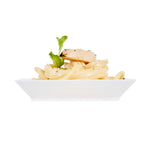 Create beautifully plated servings of small dishes using our Mini Serve Square White Plastic Small Modern Plates. Made with premium plastic, these square plates are recyclable for a speedy and nature-friendly cleanup after large catering events or busy banquet celebrations. Designed with a shiny white finish, these sleek small plastic plates bring a stylish look to appetizers and desserts. These white plastic plates feature a squared design and raised edges for an elegant and mess-free way to serve dishes. To maintain its appearance and stop leaks, these sturdy square plates are crack-resistant and leak-resistant. Perfect for space-saving storage, these small plastic plates are conveniently stackable. Measuring 3.9 inches in length by 3.9 inches in width, these white plastic plates are sold in a 100 count box.