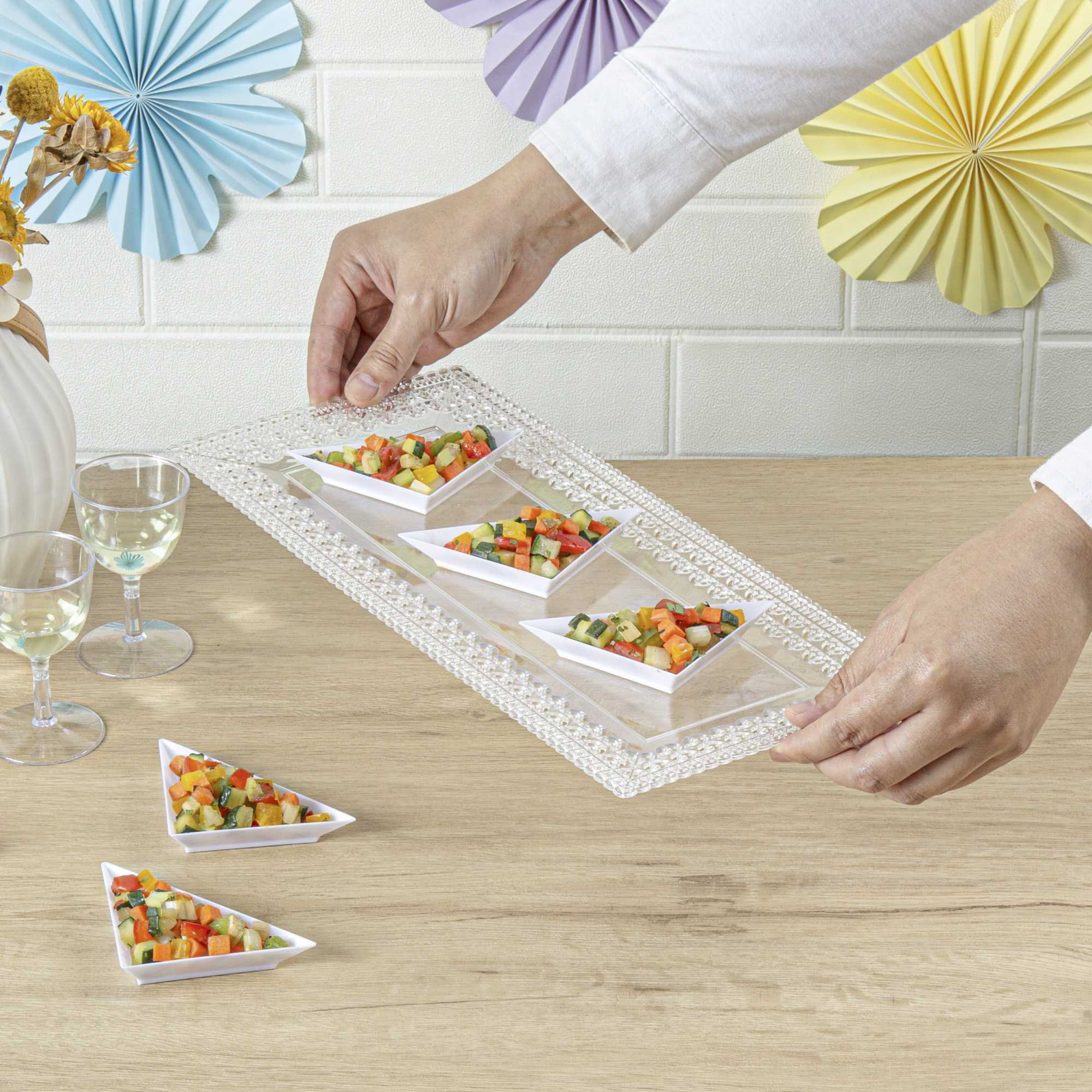 - Raised edges carefully contain food, preventing appetizers from falling out