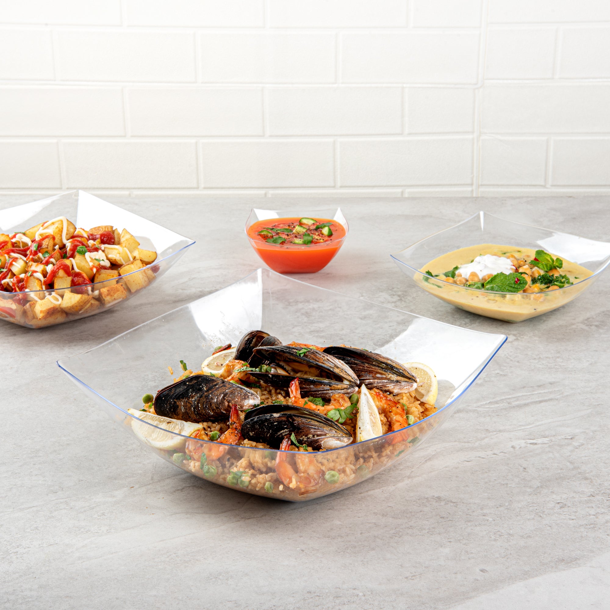 - Minimalist style effortlessly complements food presentations and tablescapes