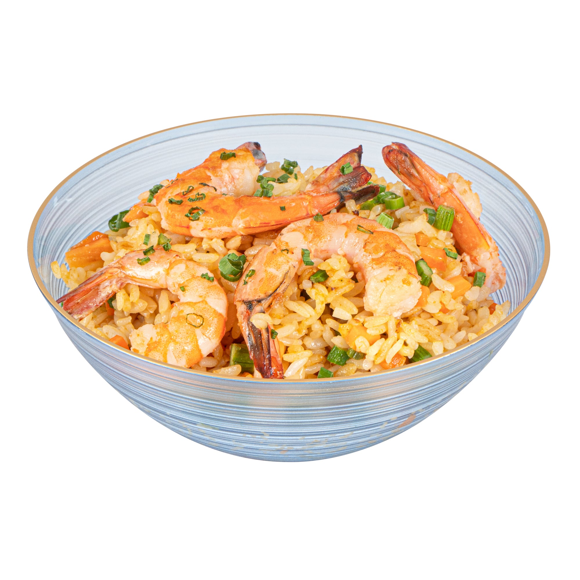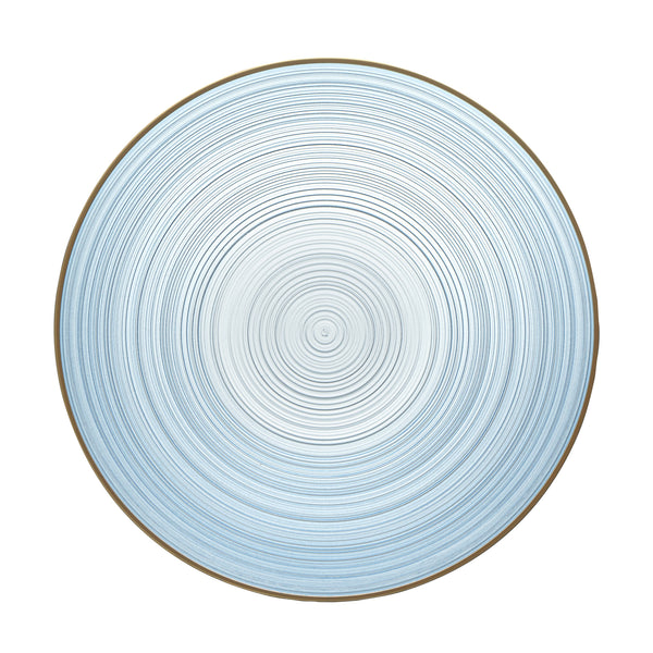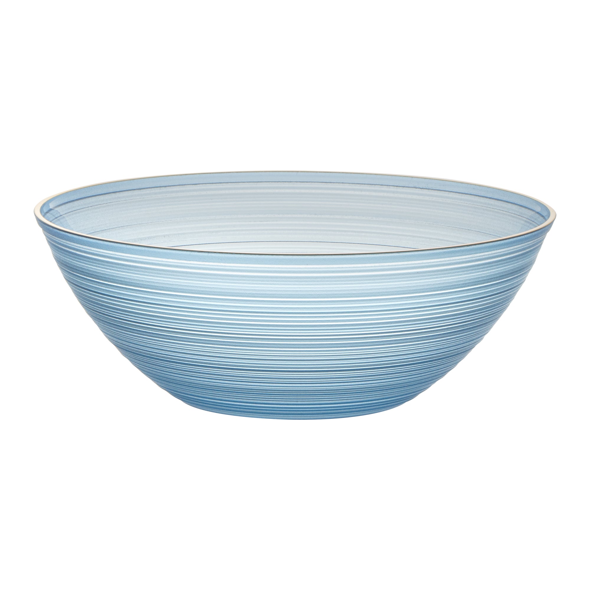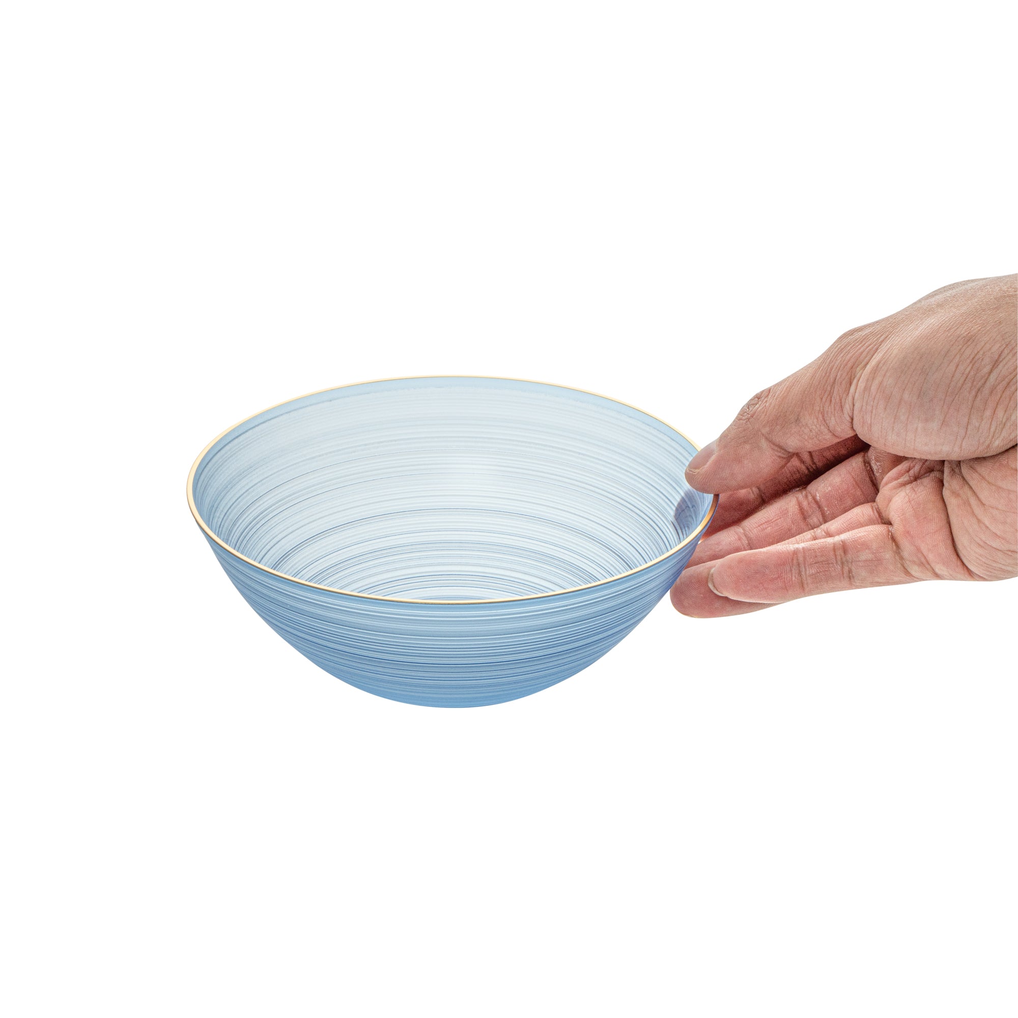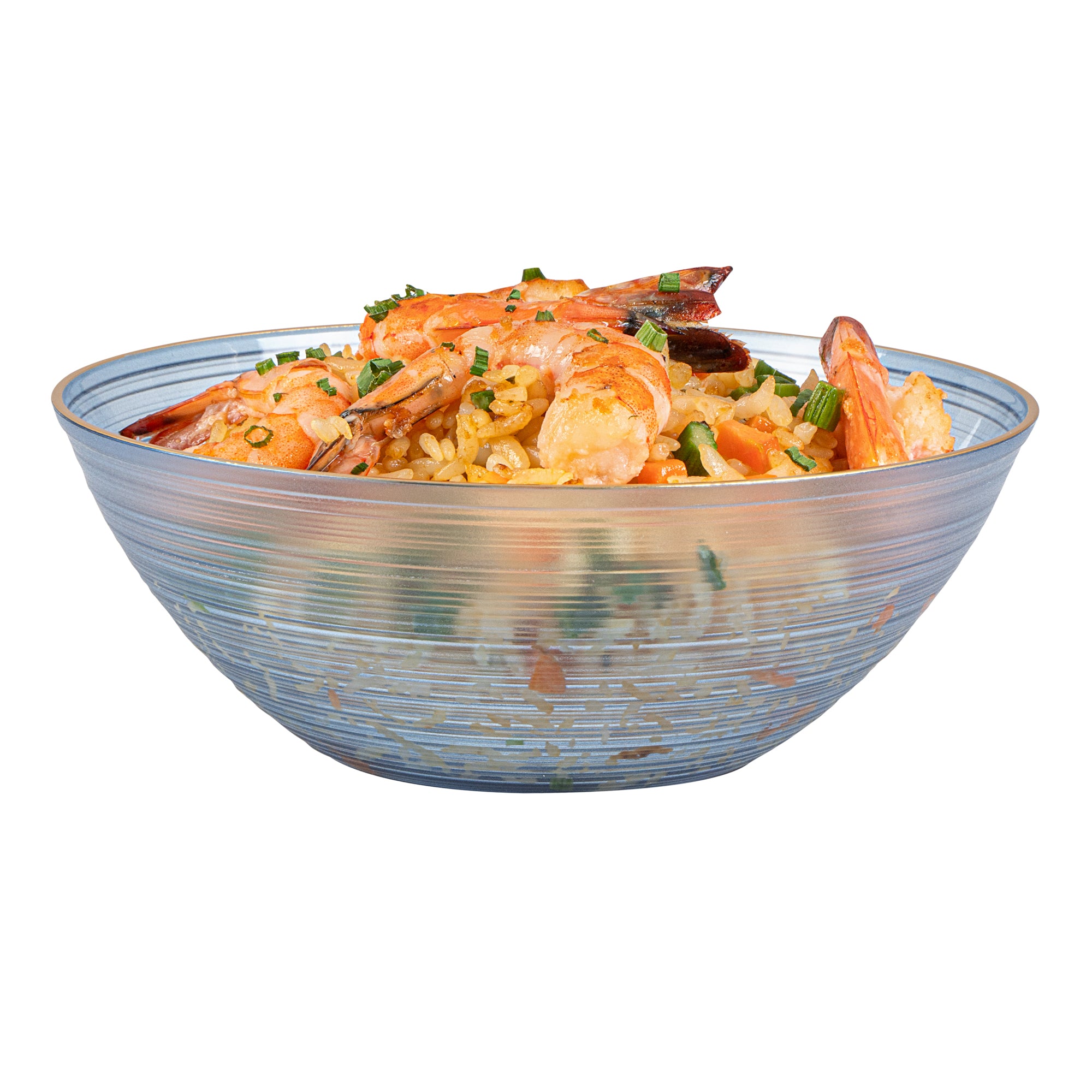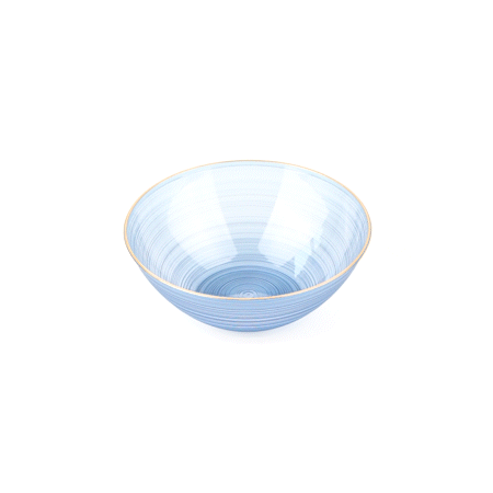 16 OZ ROUND BLUE TRANSLUCENT PLASTIC GOLD-RIMMED BOWL - RIPPLED