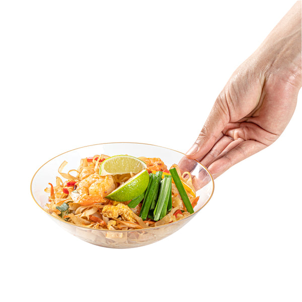 16 OZ ROUND CLEAR PLASTIC GOLD-RIMMED BOWL