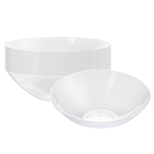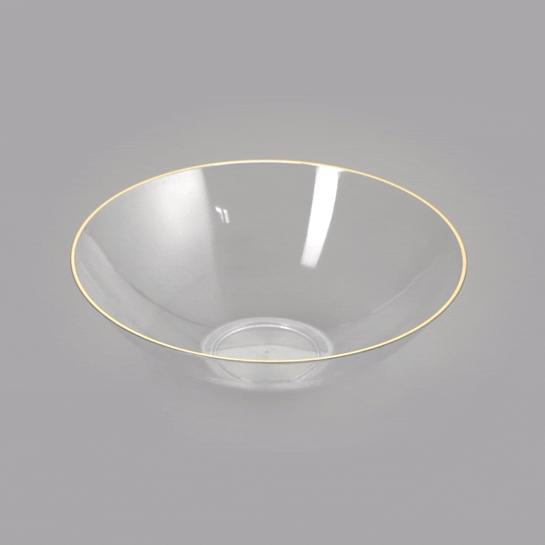 16 OZ ROUND CLEAR PLASTIC GOLD-RIMMED BOWL