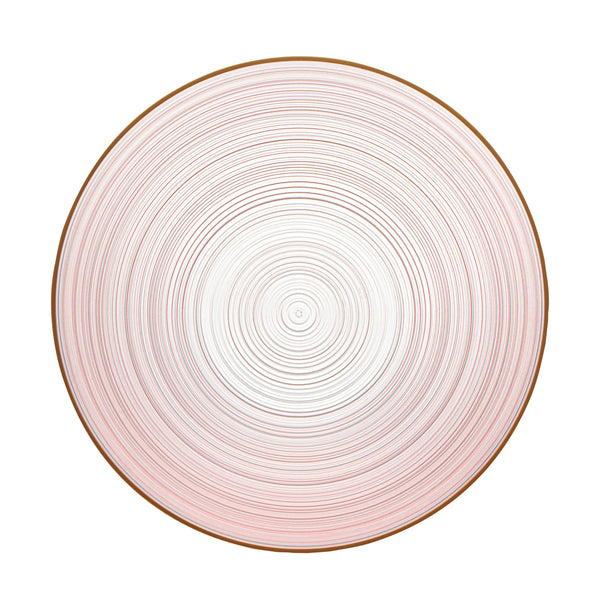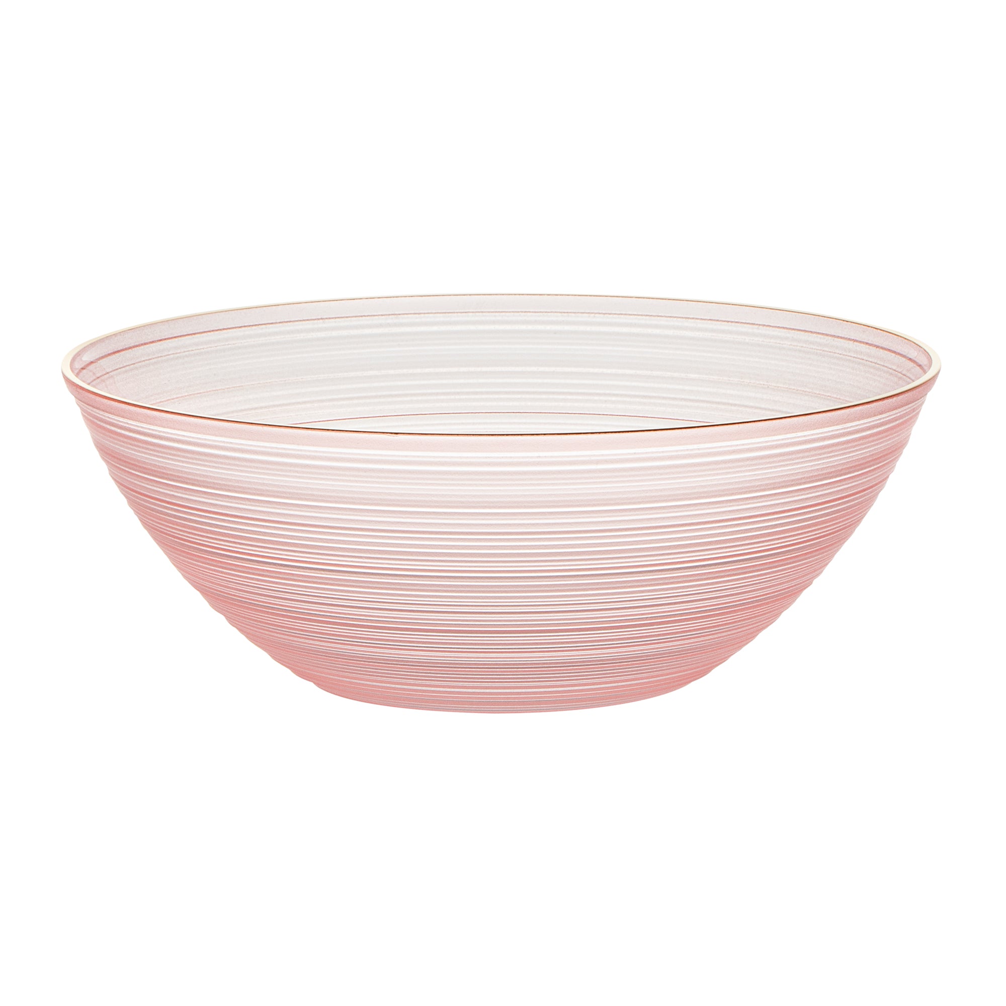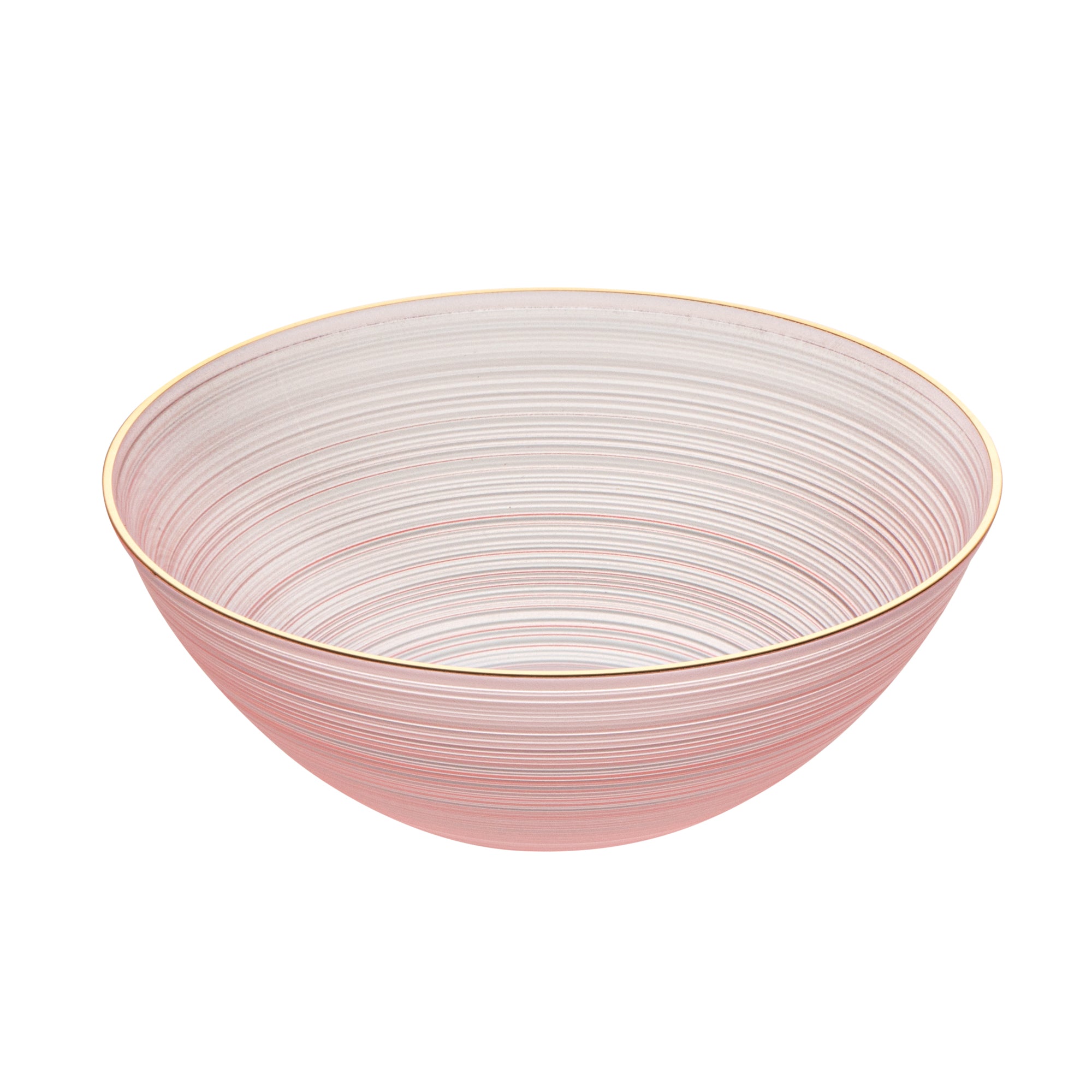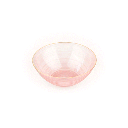 16 OZ ROUND PINK TRANSLUCENT PLASTIC GOLD-RIMMED BOWL - RIPPLED