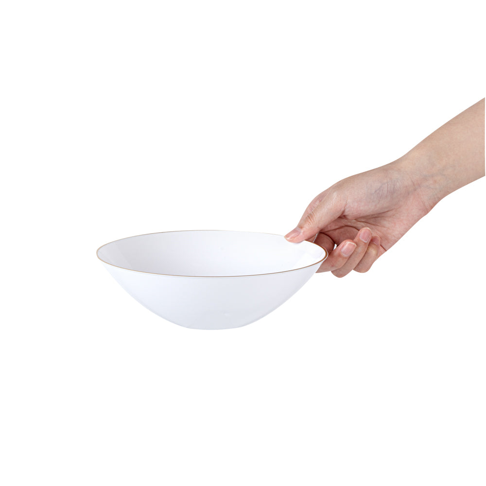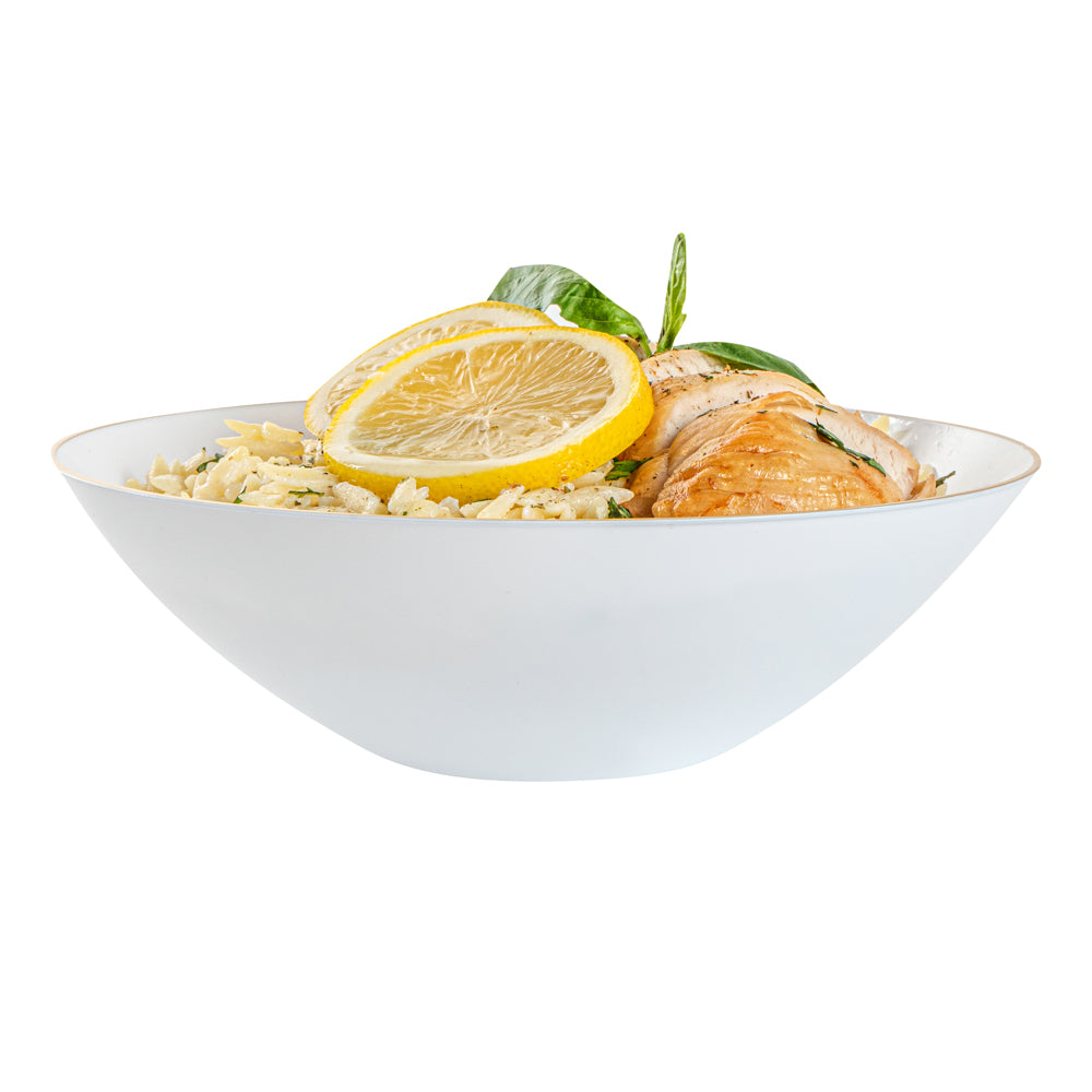 16 OZ ROUND WHITE PLASTIC GOLD-RIMMED BOWL
