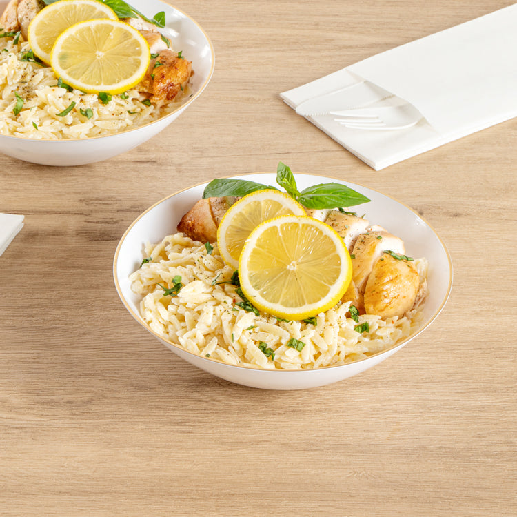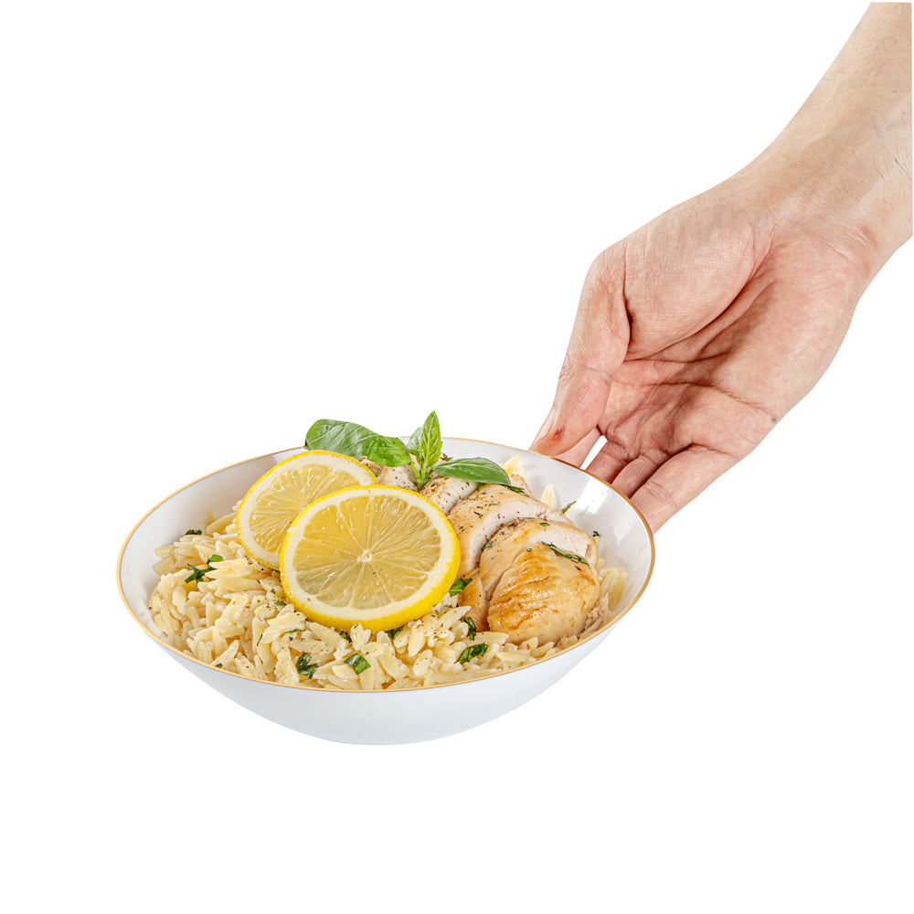 Crafted from high-quality plastic, these gold rimmed bowls are highly durable and resilient, allowing you to easily serve and enjoy food without any breakage or damage. The sturdiness of the material provides a reliable and effortless way to hold a variety of food items, making them a great addition to any dining occasion or event!