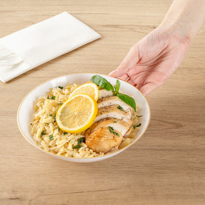 These gold-rimmed bowls and plates are sold in large and small count box for you to conveniently choose for your needs. Don't worry about serving in large events!