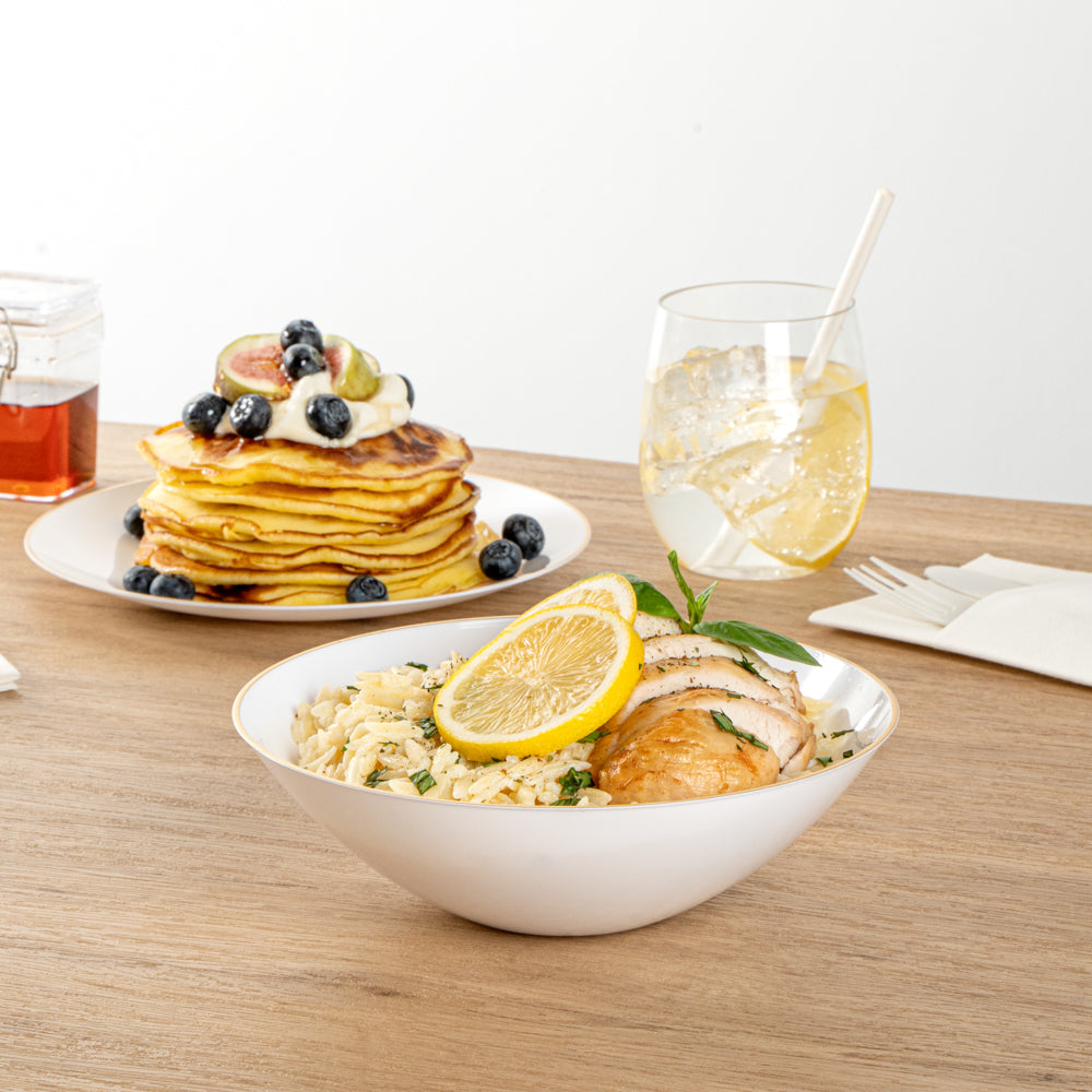 - Gold-rimmed design visually enhances the look of your tablescapes
