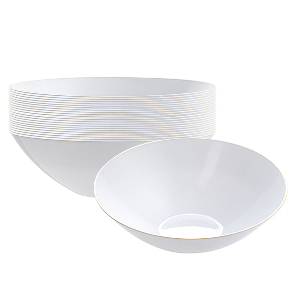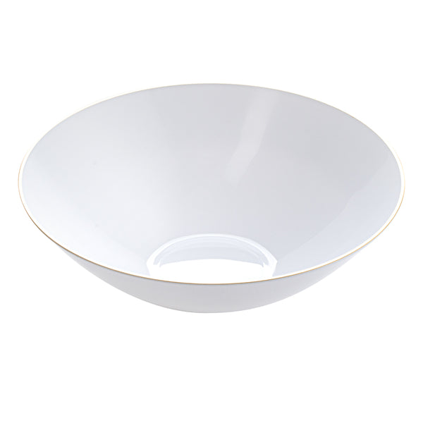 16 OZ ROUND WHITE PLASTIC GOLD-RIMMED BOWL