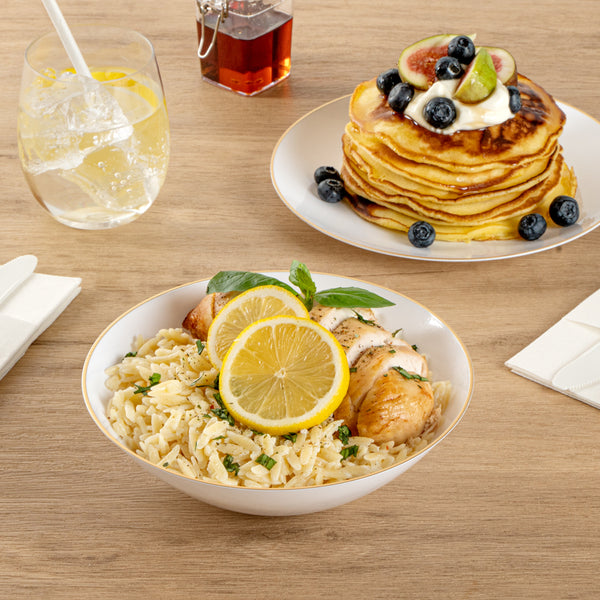 - Gold-rimmed design visually enhances the look of your tablescapes
