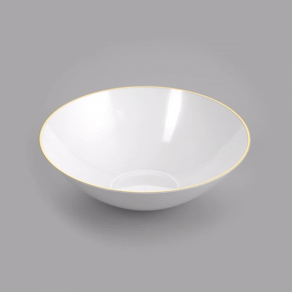 16 OZ ROUND WHITE PLASTIC GOLD-RIMMED BOWL