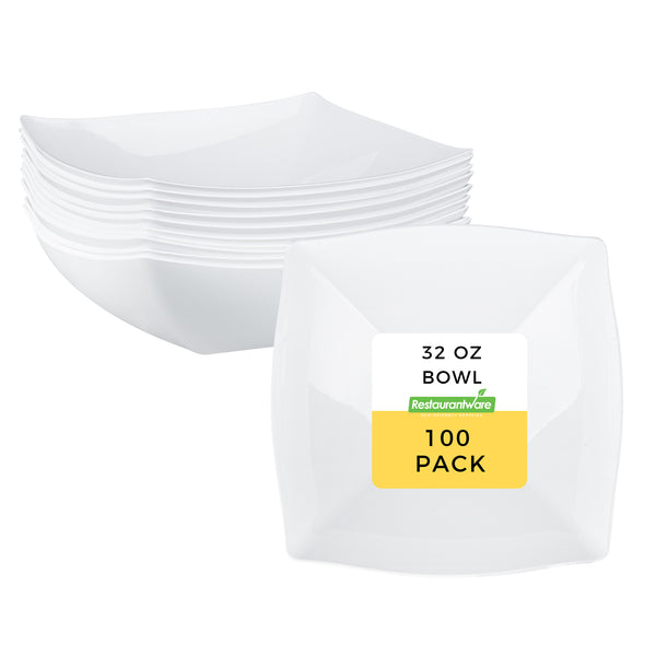 32 OZ SQUARE WHITE PLASTIC BOWL