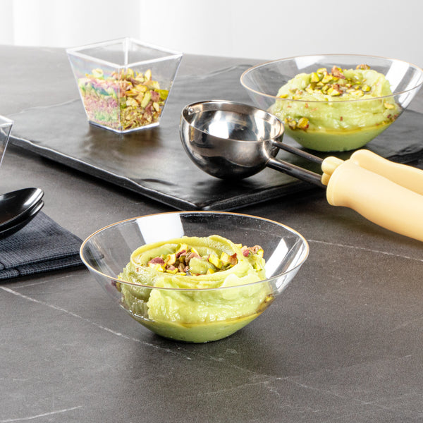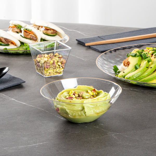 These plastic bowls, adorned with variety of designs, effortlessly elevate the presentation of your food. The addition of the intricate accent creates refined touch that can elevate the overall dining experience for any event!