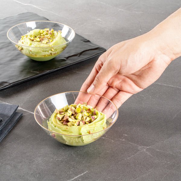 6 OZ ROUND CLEAR PLASTIC GOLD-RIMMED BOWL