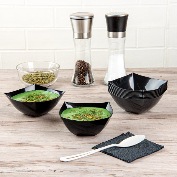 8 OZ SQUARE BLACK PLASTIC BOWL