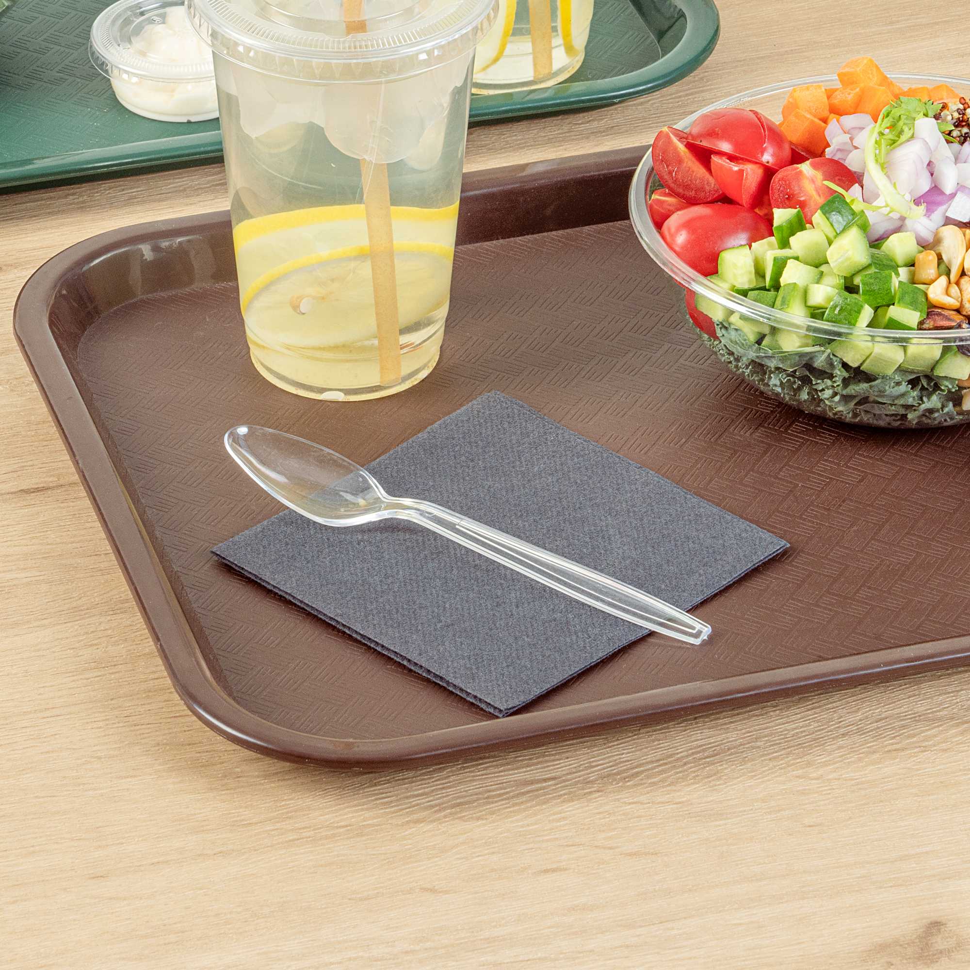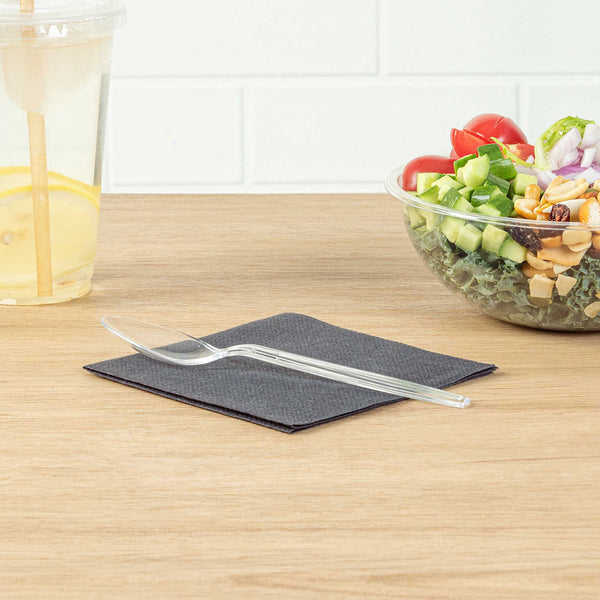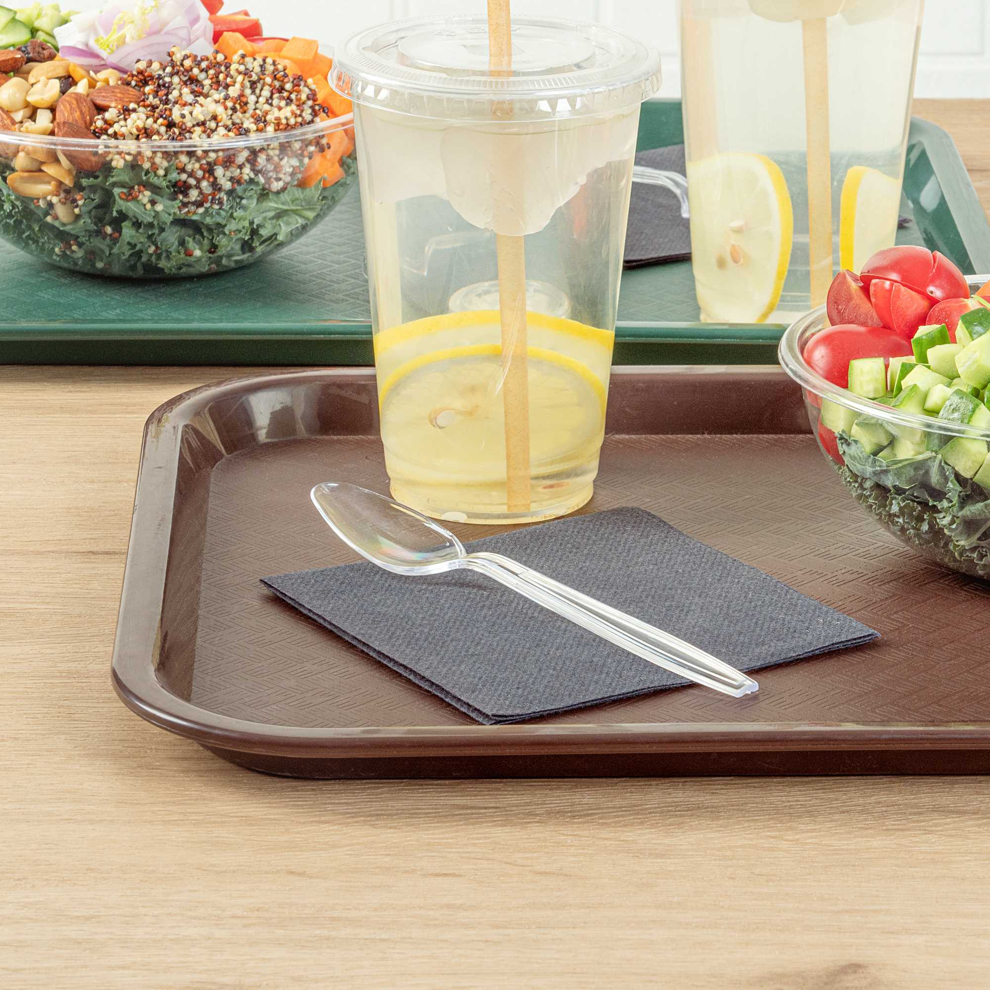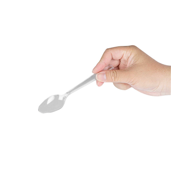 Enhance your customers' dining experience with our Moderna Clear Plastic Spoons. With high-quality plastic construction, these disposable spoons are designed to resist bending or warping during use. The sleek, rounded handle of these premium spoons is sturdy and provides a comfortable hold. Easily recyclable, these plastic spoons reduce your carbon footprint. To make the cleaning process less rigorous, these single-use spoons are disposable. With their crystal clear finish, these transparent plastic spoons easily match any venue or decor. Measuring 7.25 inches long, these full-sized clear plastic spoons are a convenient alternative to standard silverware. Sold in a 250 count box.