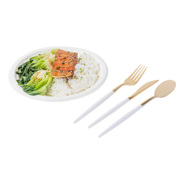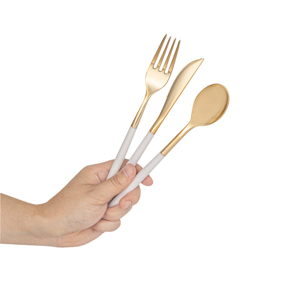 GOLD PLASTIC CUTLERY SET - WITH WHITE HANDLE