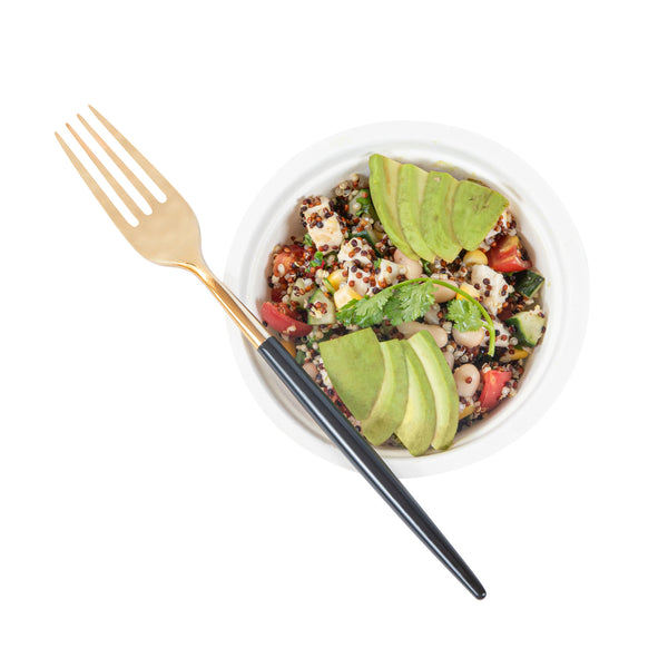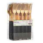 Upgrade your cutlery game with our Moderna Gold Plastic Forks. Meticulously crafted from polystyrene plastic, these plastic forks boast outstanding durability, effortlessly piercing through even the toughest foods. These plastic cutlery items are, ensuring the safety of your meals. Engineered to withstand temperatures up to 167F, these gold forks confidently handle both warm and cold dishes. These gold forks with black handles are recyclable, enabling you to actively reduce your environmental impact. Offering the utmost convenience, these fancy plastic silverware pieces are designed for seamless disposal, making post-event cleanup a breeze. With exquisite gold and black finish, these fancy plastic utensils lend an elegant touch to your tablescape, elevating the overall aesthetic appeal. Each utensil in this party cutlery set measures 7.5 inches long. Shipped in a 500 count box.
