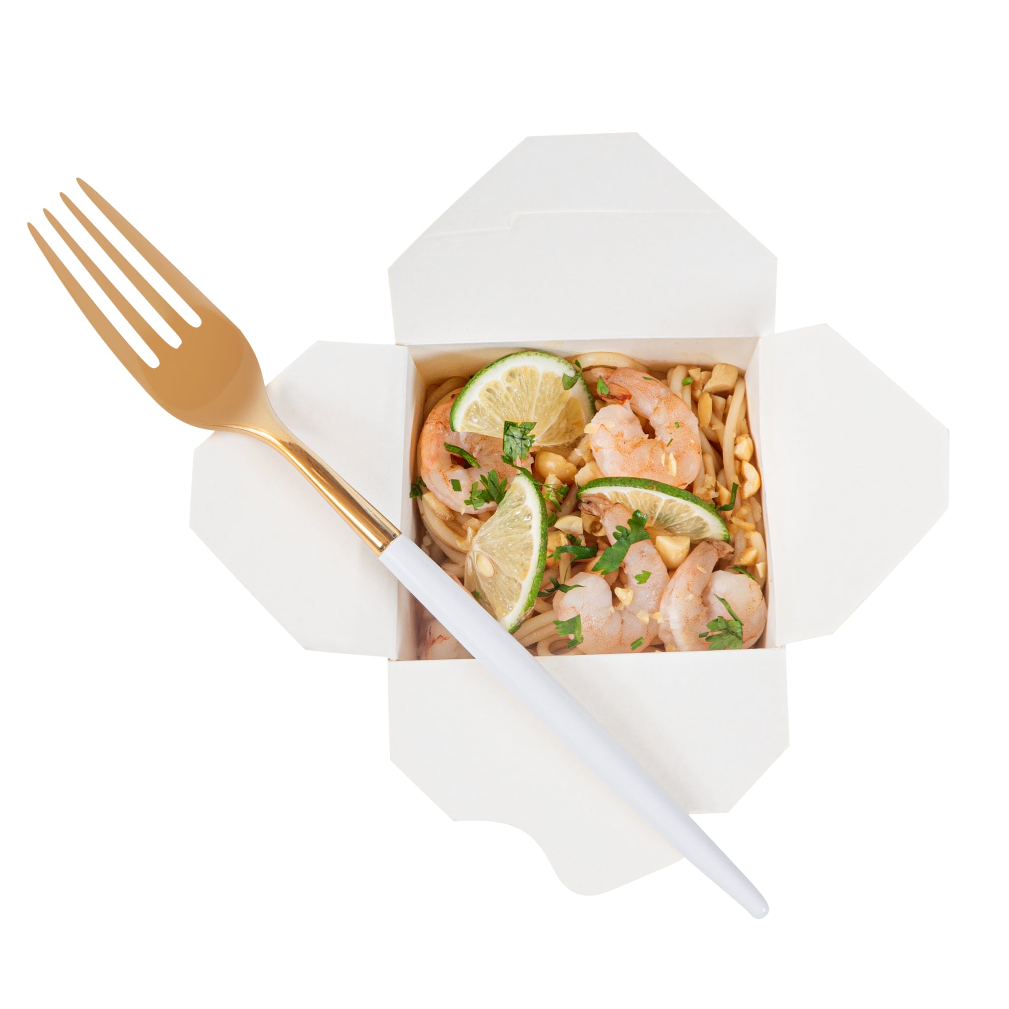 GOLD PLASTIC FORK - WITH WHITE HANDLE