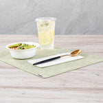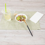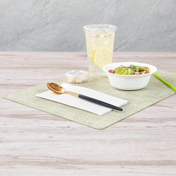 Embrace the modern aesthetic with our Moderna Gold Plastic Spoons. Expertly crafted from durable polystyrene plastic, these plastic spoons are built to withstand the demands of scooping a variety of food items. These plastic utensils are, ensuring that no harmful substances will contaminate your meals. With an impressive resistance to temperatures up to 150F, these gold spoons effortlessly accommodate both hot and cold dishes with ease. Plus, these gold spoons with white handles are recyclable, offering an environmentally friendly option that allows you to minimize your carbon footprint. Designed for your convenience, these fancy plastic silverware pieces are specifically crafted for easy disposal, making them an ideal choice for large events and gatherings. Adorning gold and black finish, these fancy plastic utensils add a touch of elegance to your tablescape, elevating your dining setting. Each utensil in these party cutlery sets measures 7.75 inches long. Shipped in a 50 count box.