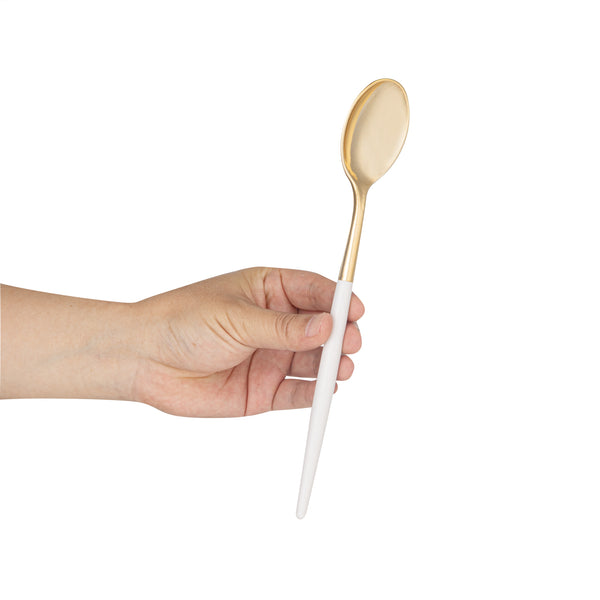 GOLD PLASTIC SPOON - WITH WHITE HANDLE