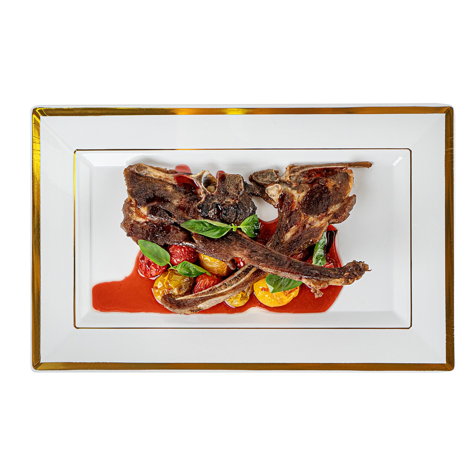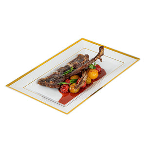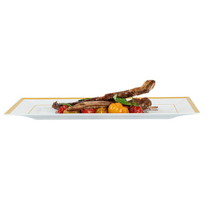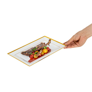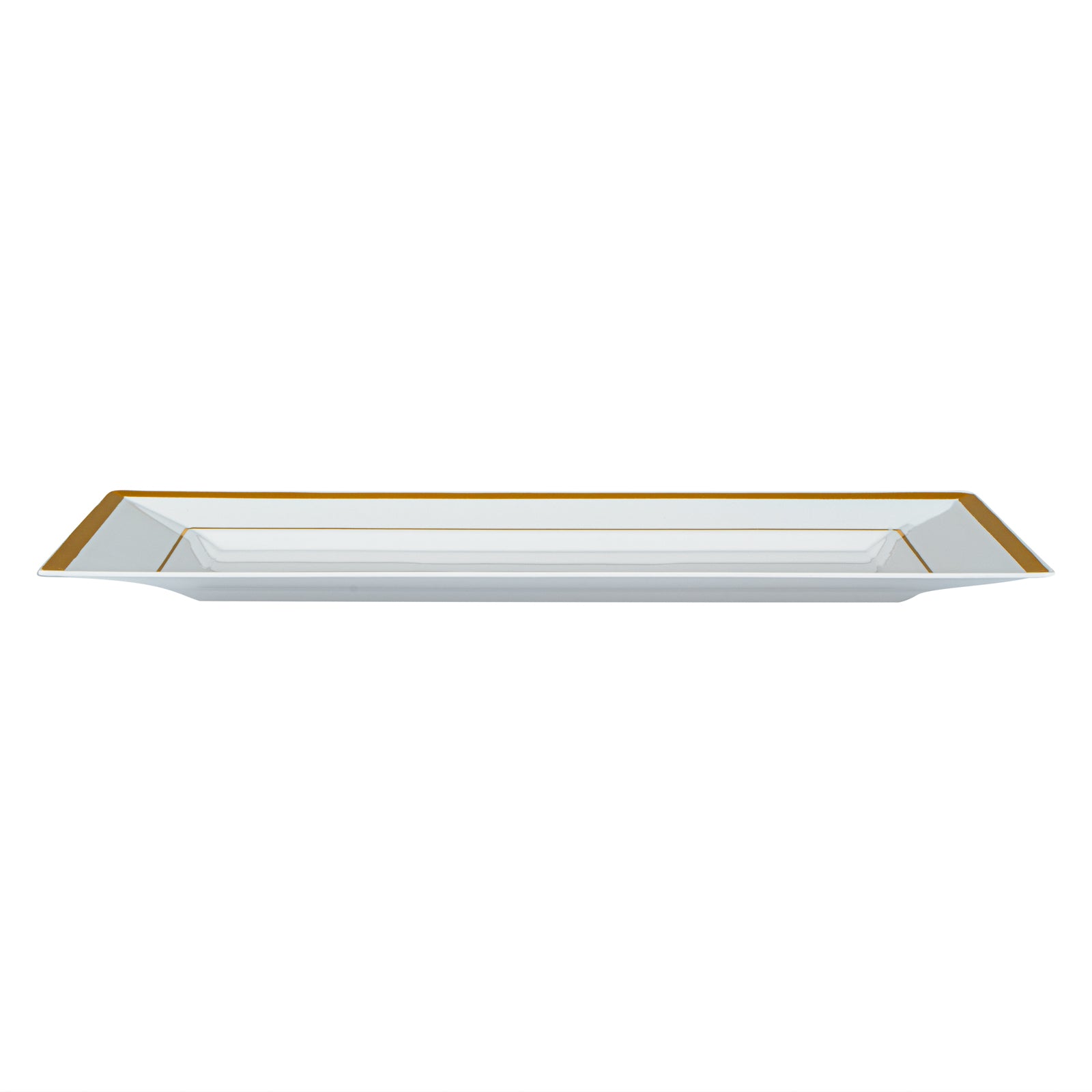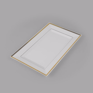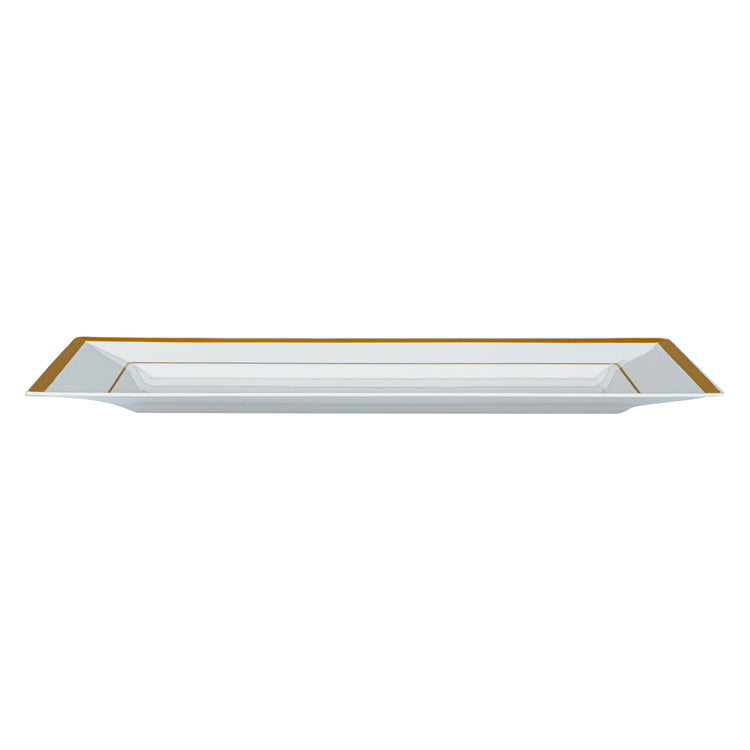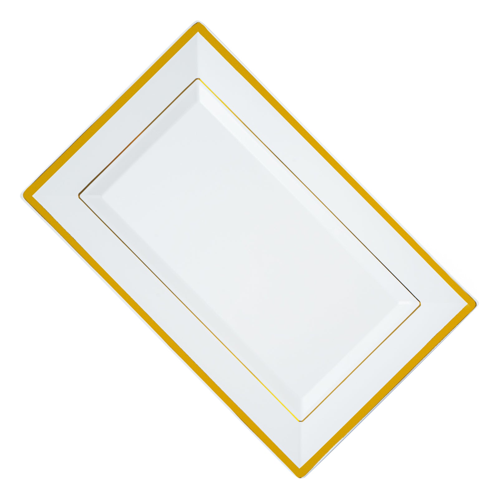 RECTANGLE WHITE PLASTIC GOLD-RIMMED PLATE