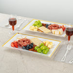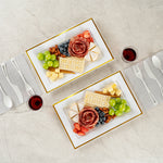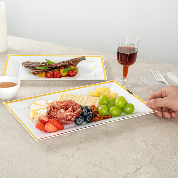 RECTANGLE WHITE PLASTIC GOLD-RIMMED PLATE