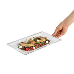 - Rectangular shape optimizes space on buffet tables