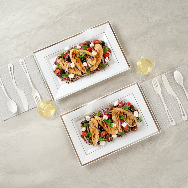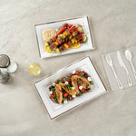 RECTANGLE WHITE PLASTIC SILVER-RIMMED PLATE
