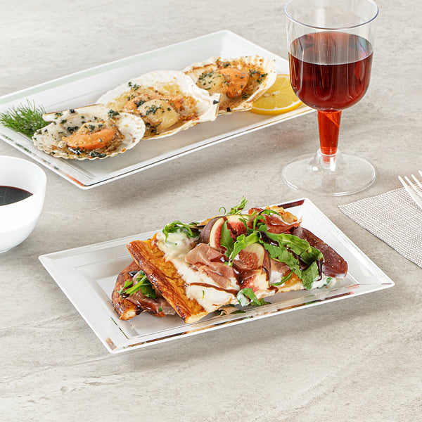 RECTANGLE WHITE PLASTIC SILVER-RIMMED PLATE
